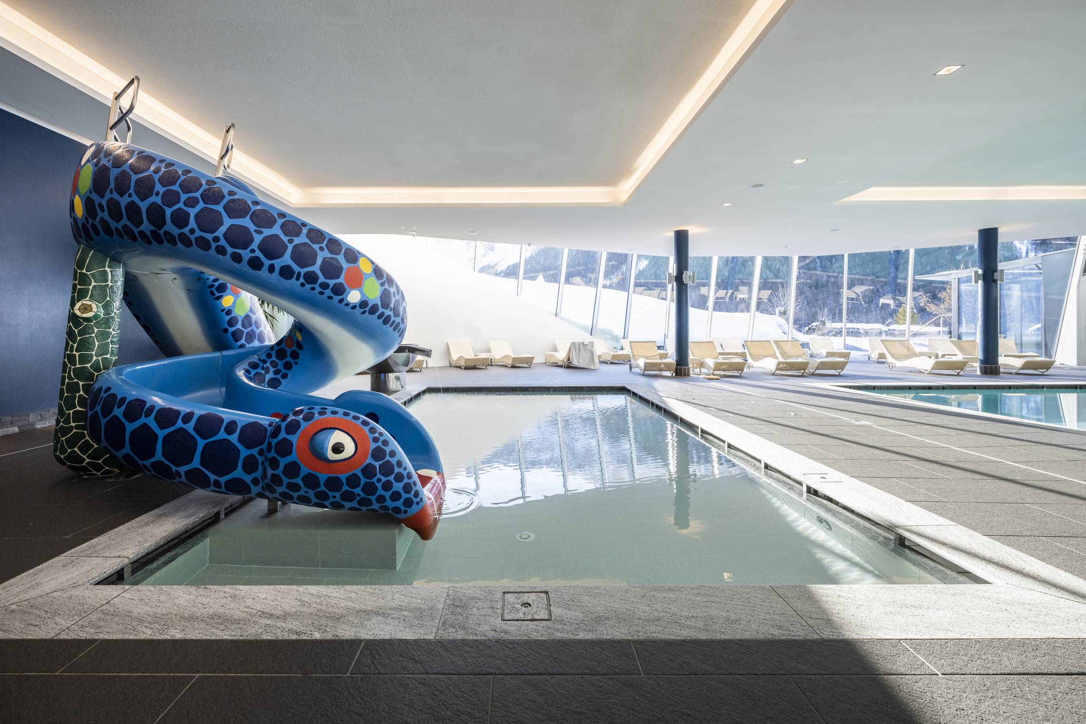 - Dolomite Panorama Spa covering 2,000 m² (panoramic pool, children's pool with snake slide, outdoor pool, 5 saunas, tea bar, hot tub)