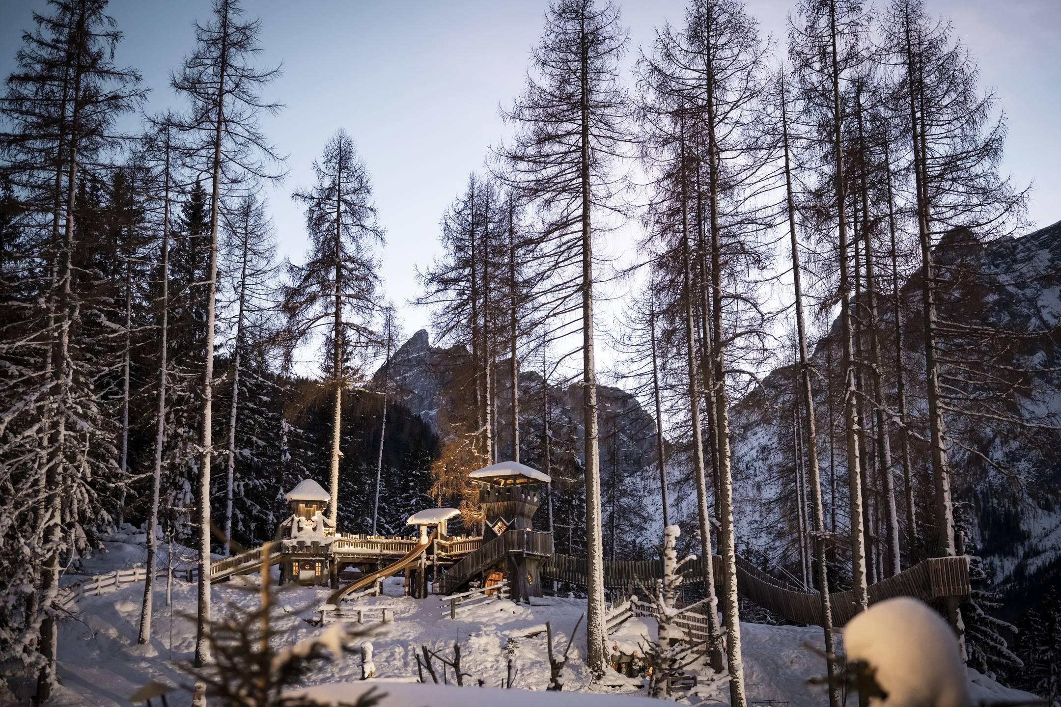 - Outdoor adventure playground with snow fun park, magic carpet, playgrounds also in winter