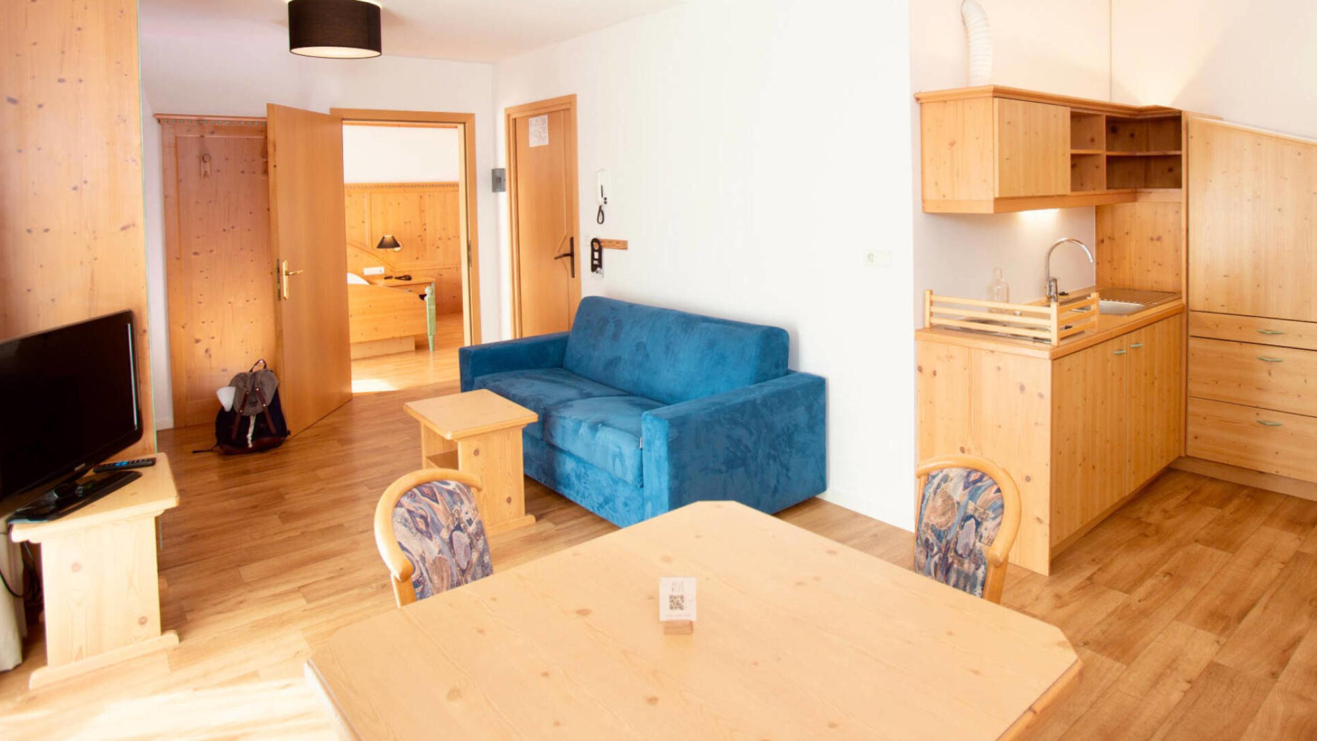 42 m²This fully equipped apartment, consisting of a master bedroom and a living room or bedroom with a sofa bed, scores with a kitchenette, a fully equipped bathroom and a balcony.