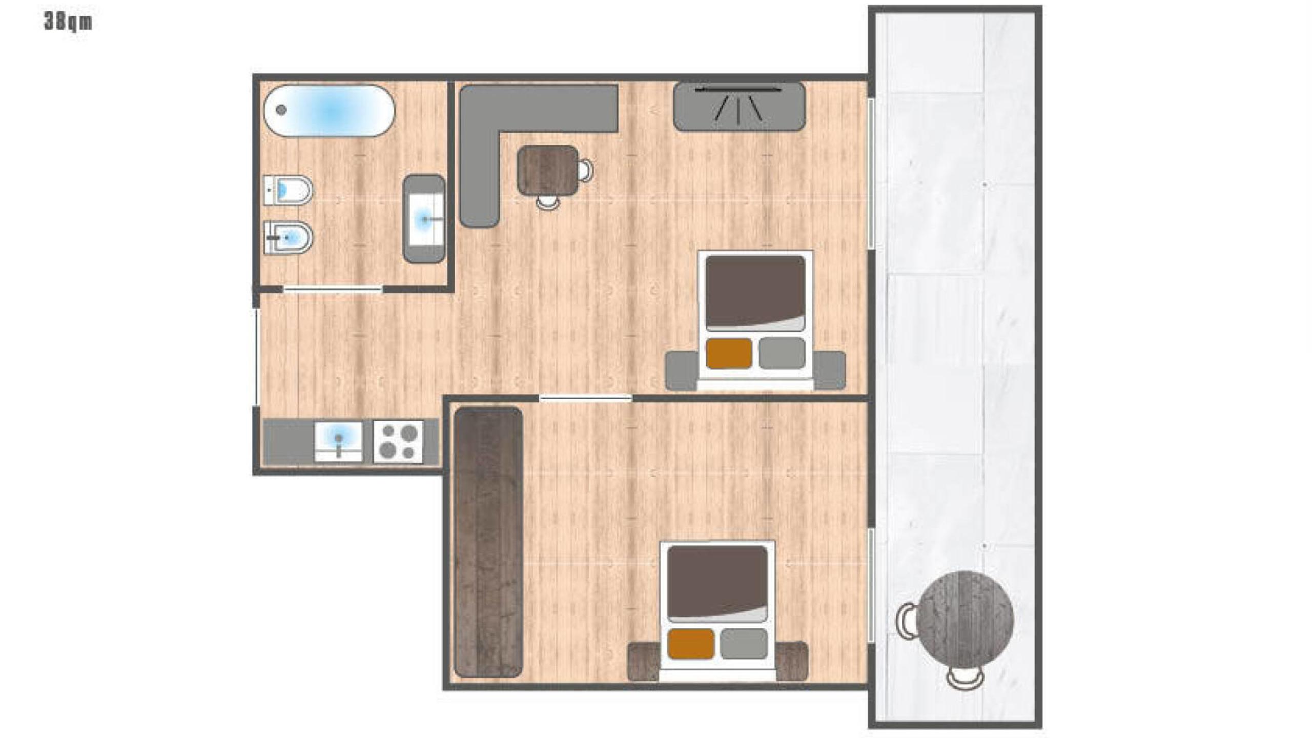 38 m²This bright family suite, consisting of a master bedroom and a living or bedroom with double bed, is the ideal retreat for your family. Besides the fully equipped kitchenette and spacious bathroom, this apartment also scores with a balcony.