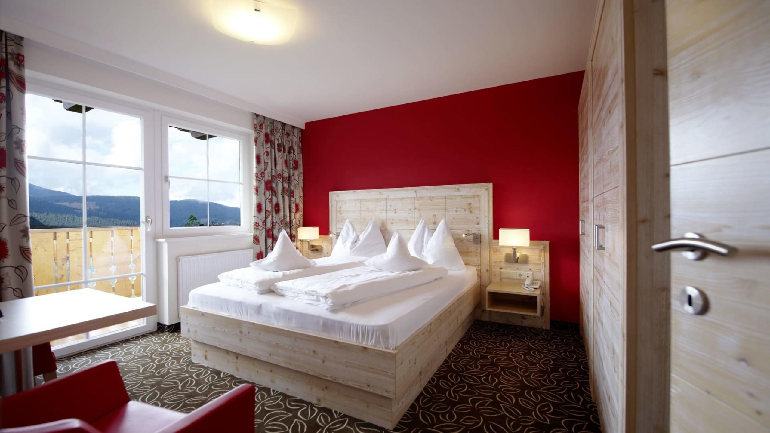 Large family suite with living/sleeping area, closet, separate children's bedroom with bunk beds, bathroom with shower and bidet, separate WC; large balcony with southern exposure