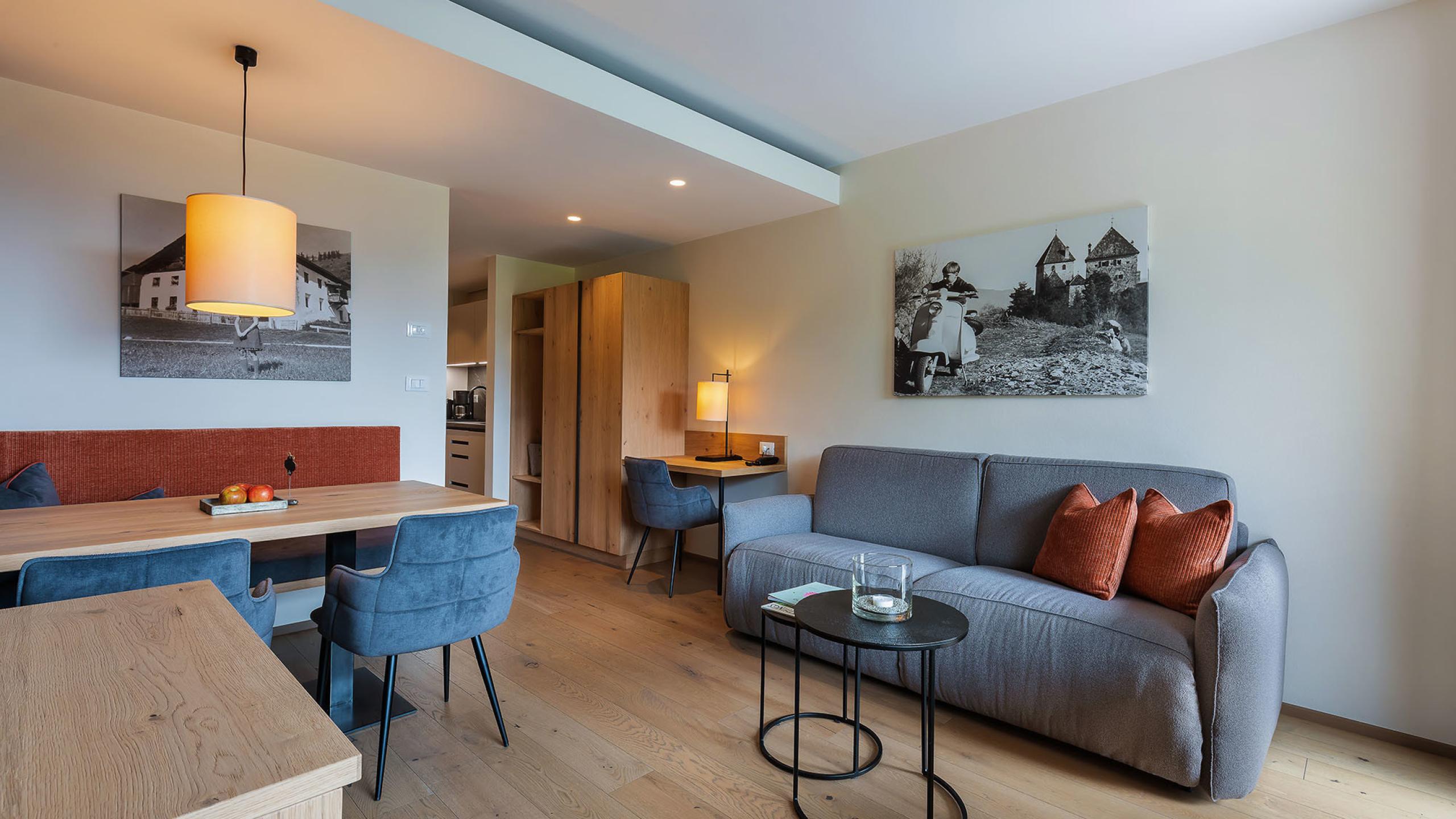 Two-room apartment, south-facing with terrace and stunning views, living room with pull-out sofa, bedroom with double and single bed, space for a cot, kitchenette with dishwasher, shower, toilet, cosy bathrobes and toiletries bag, hairdryer, free WiFi, satellite TV, approx. 52 m²
