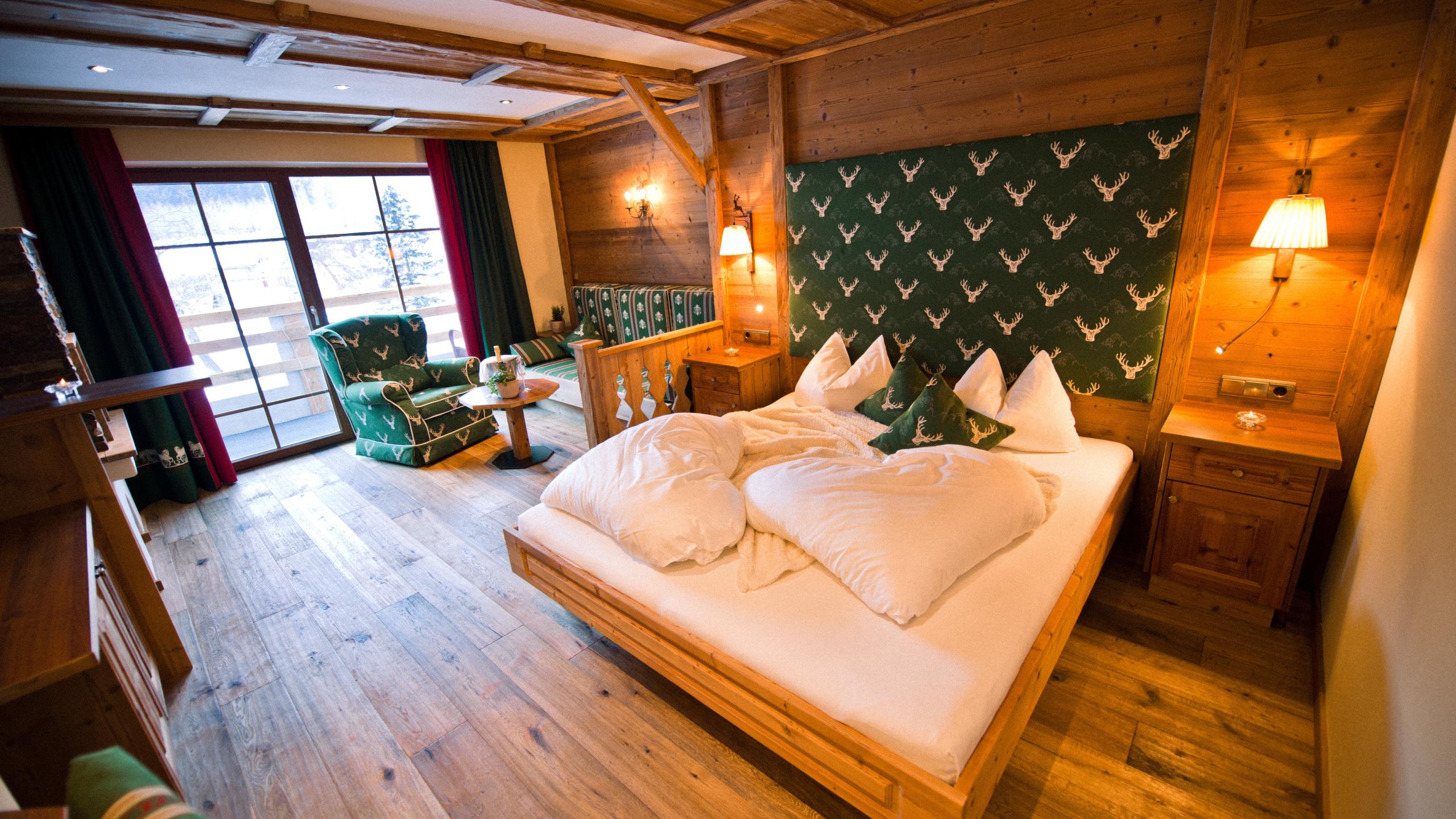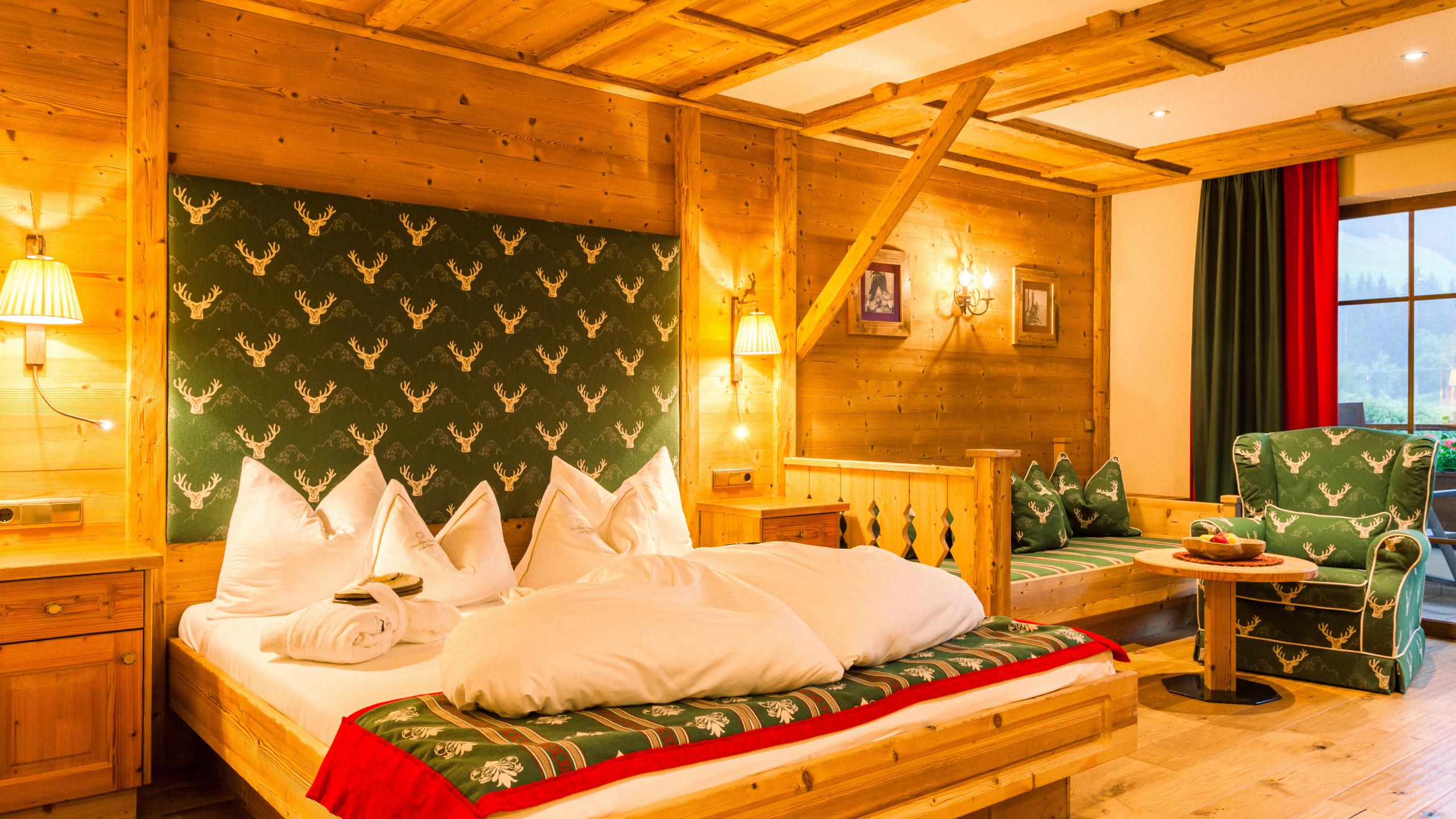 jacuzzi tub and shower, separated WC, bidet, TV, balcony, telephone, safe, mini-fridge; living room area with sleeping couch, walk-in closet, handicapped accessible; for 2 - 3 persons;