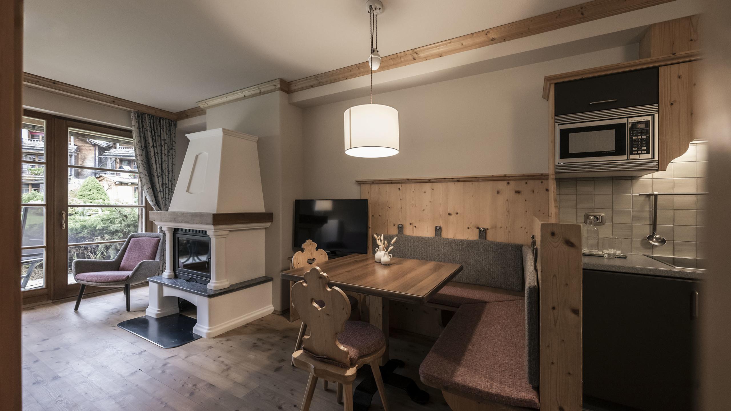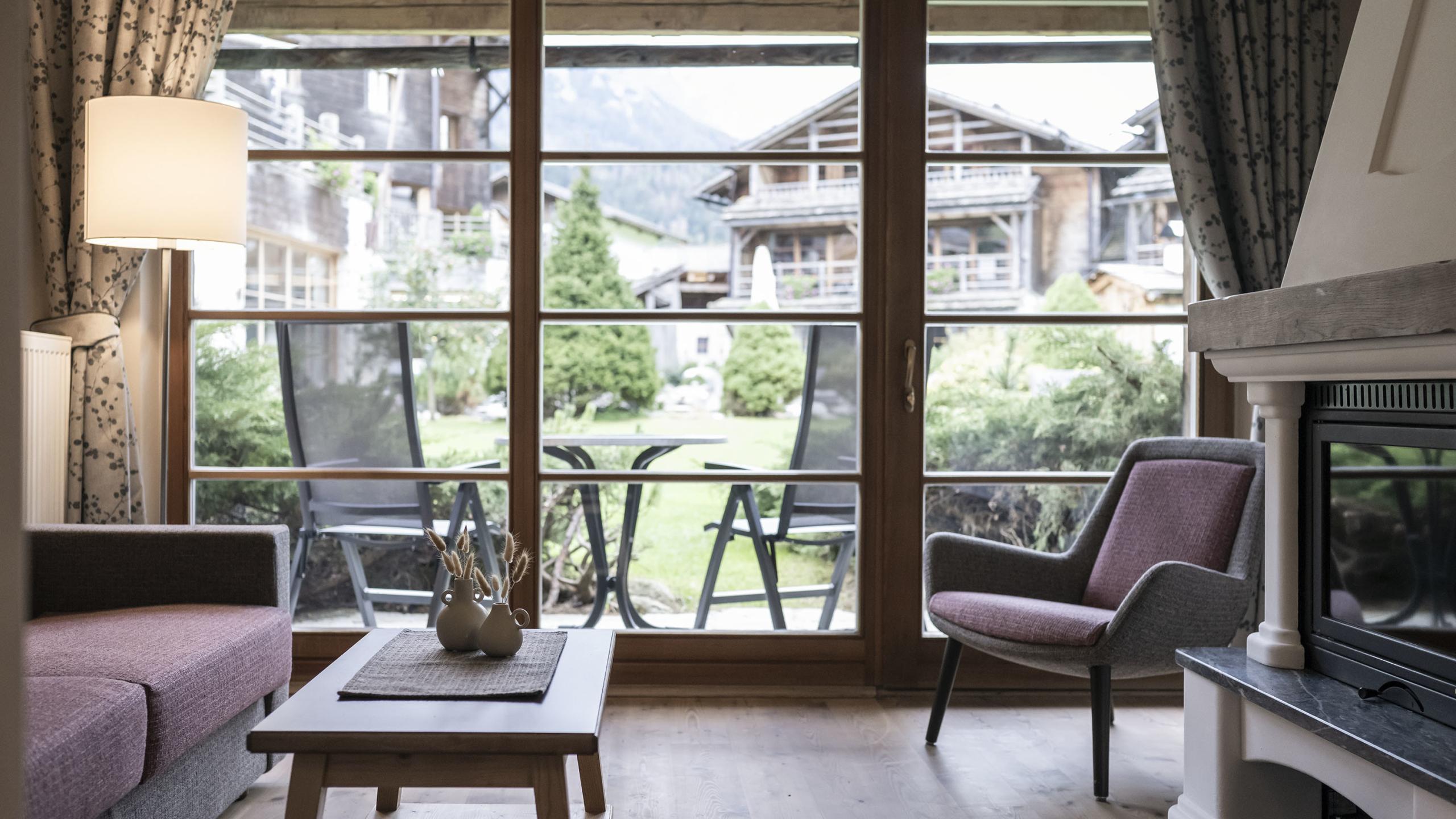 With 50 m², the Montana Chalet with garden and terrace disposes of a living room with cooking corner, open fireplace and extendible sofa bed, a separate bedroom and a bathroom with shower or bathtub. The Chalet is connected internally with the main house (you don’t need to go outside)