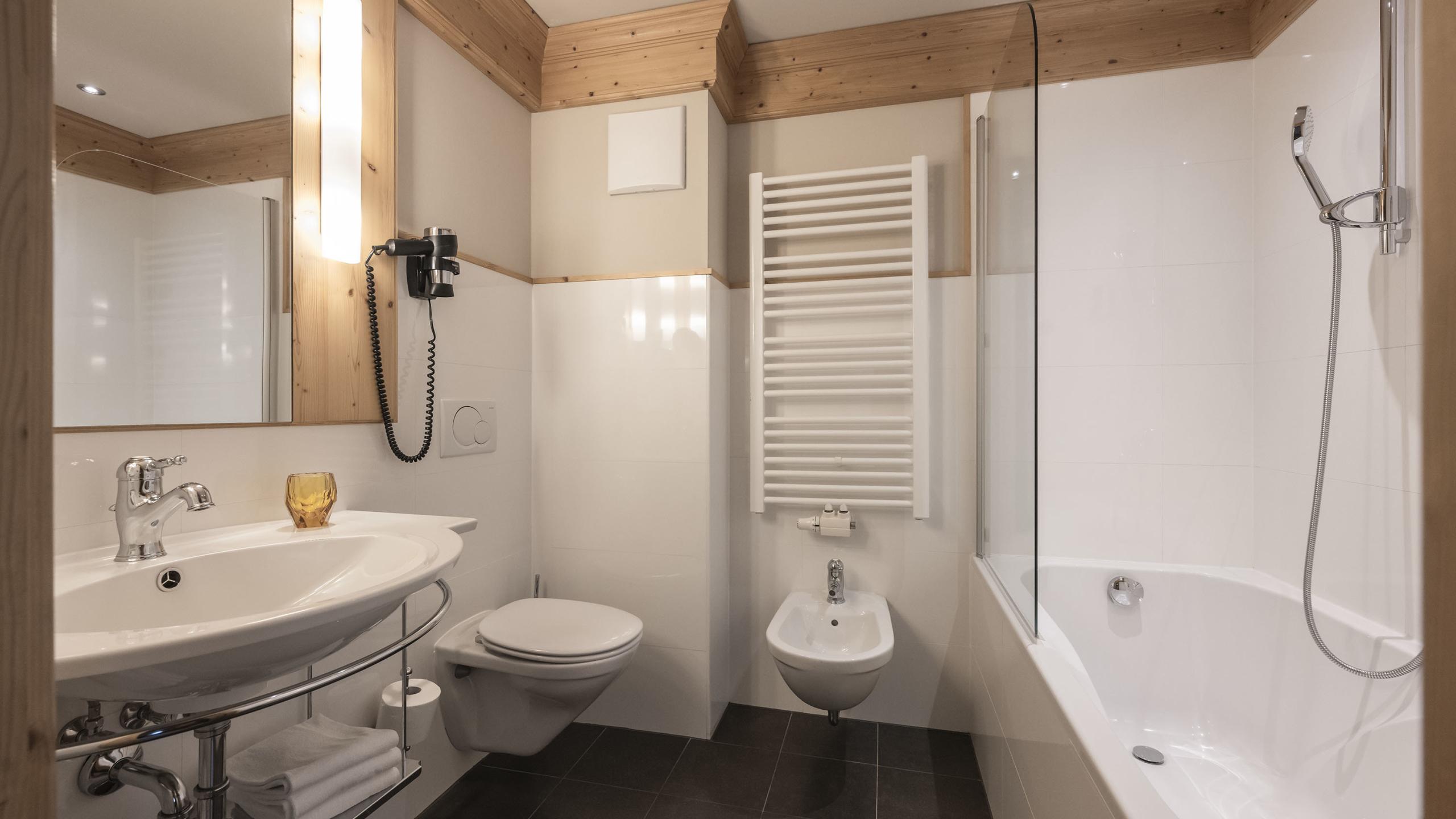 The Suite Alpina, particularly suitable for 2 persons, is located in the main building of the family hotel. This 40 m² suite has a living room with cooking corner and counter, separate bedroom and lovely balcony. The bathroom includes a bathtub, shower, toilet, bidet, hair-dryer and bathrobes. Of course, there’s also a satellite TV, Internet and a telephone.