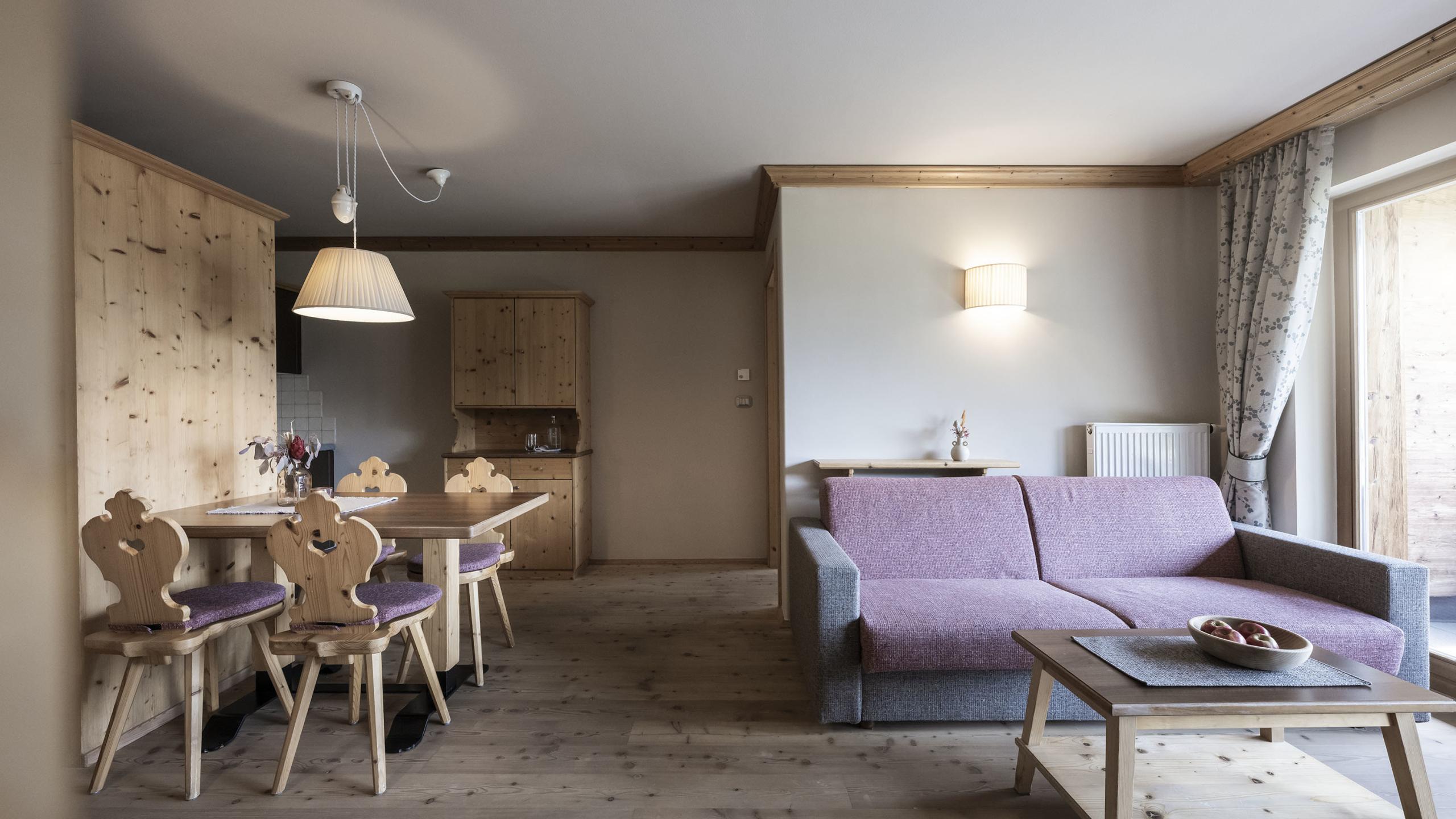 A vacation with children at the Suite Familia, in the hotel’s main building, will be a fantastic experience for the entire family. This 50 m² suite is perfect for a wonderful family vacation. The cooking corner is fully equipped to quickly prepare delicious dishes while children play in the living room. A little bit of television and then everyone off to bed, to wake up the next day fully refreshed and ready for another exciting day of vacation.