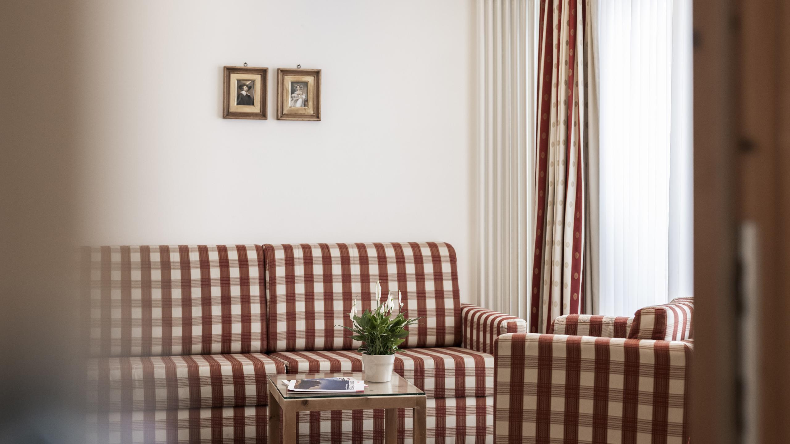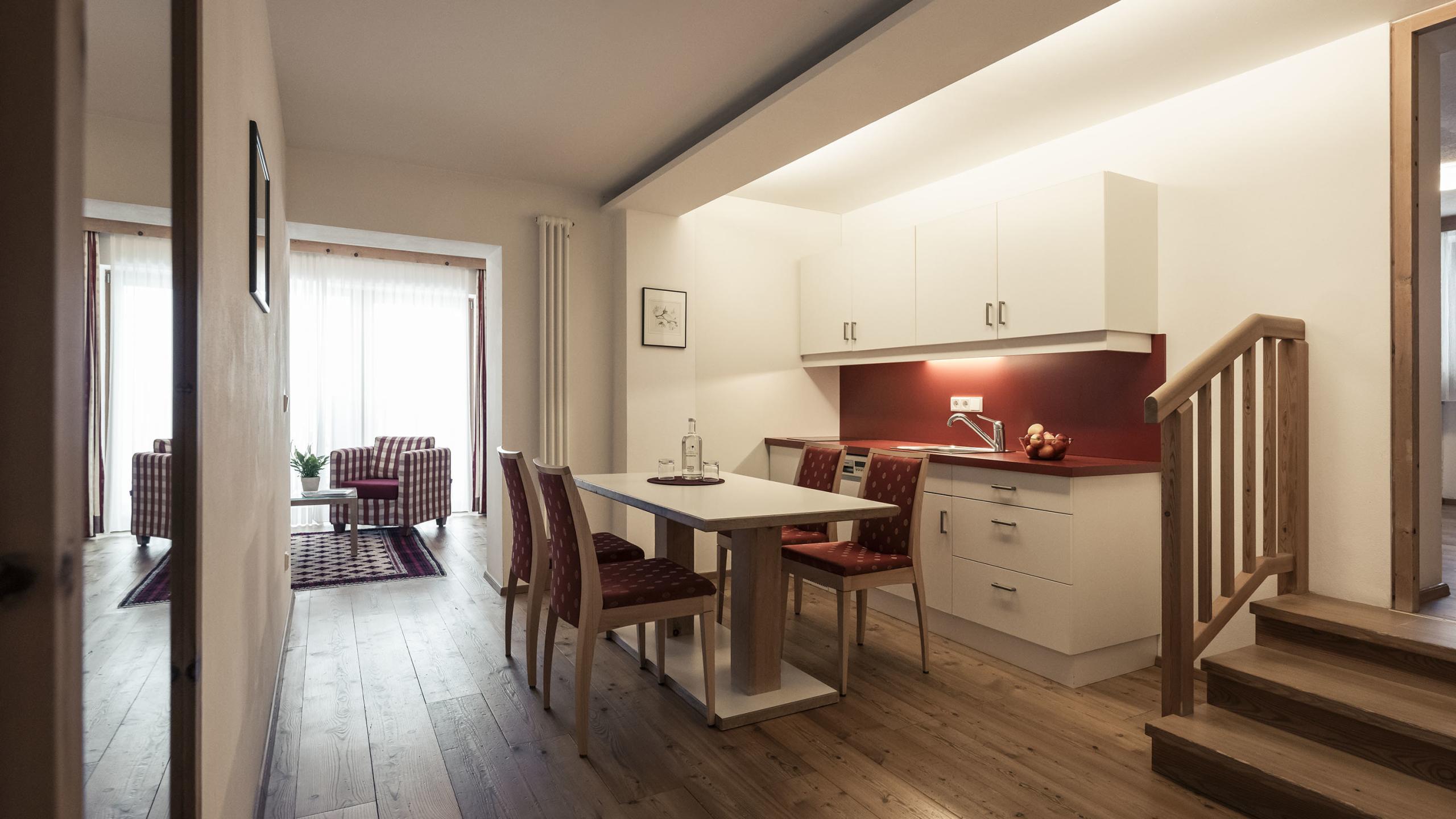 Spacious family suite with kitchen and large panoramic terrace with views of the Sexten Dolomites