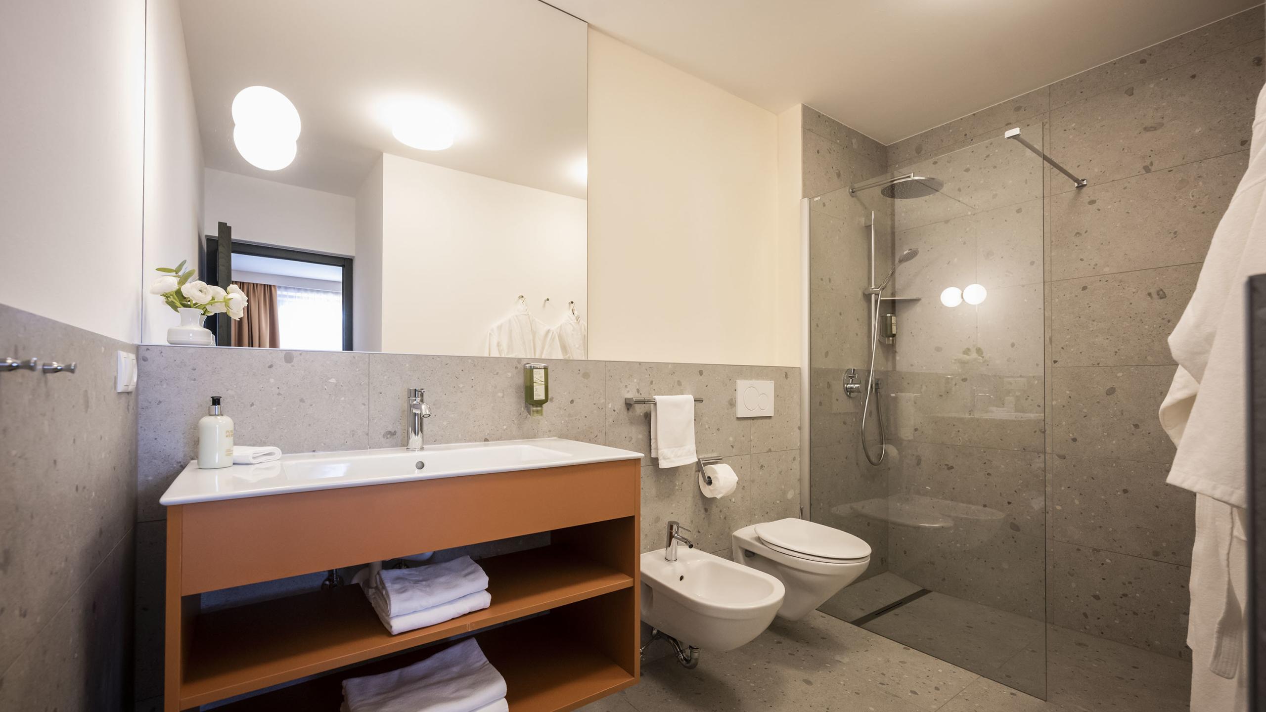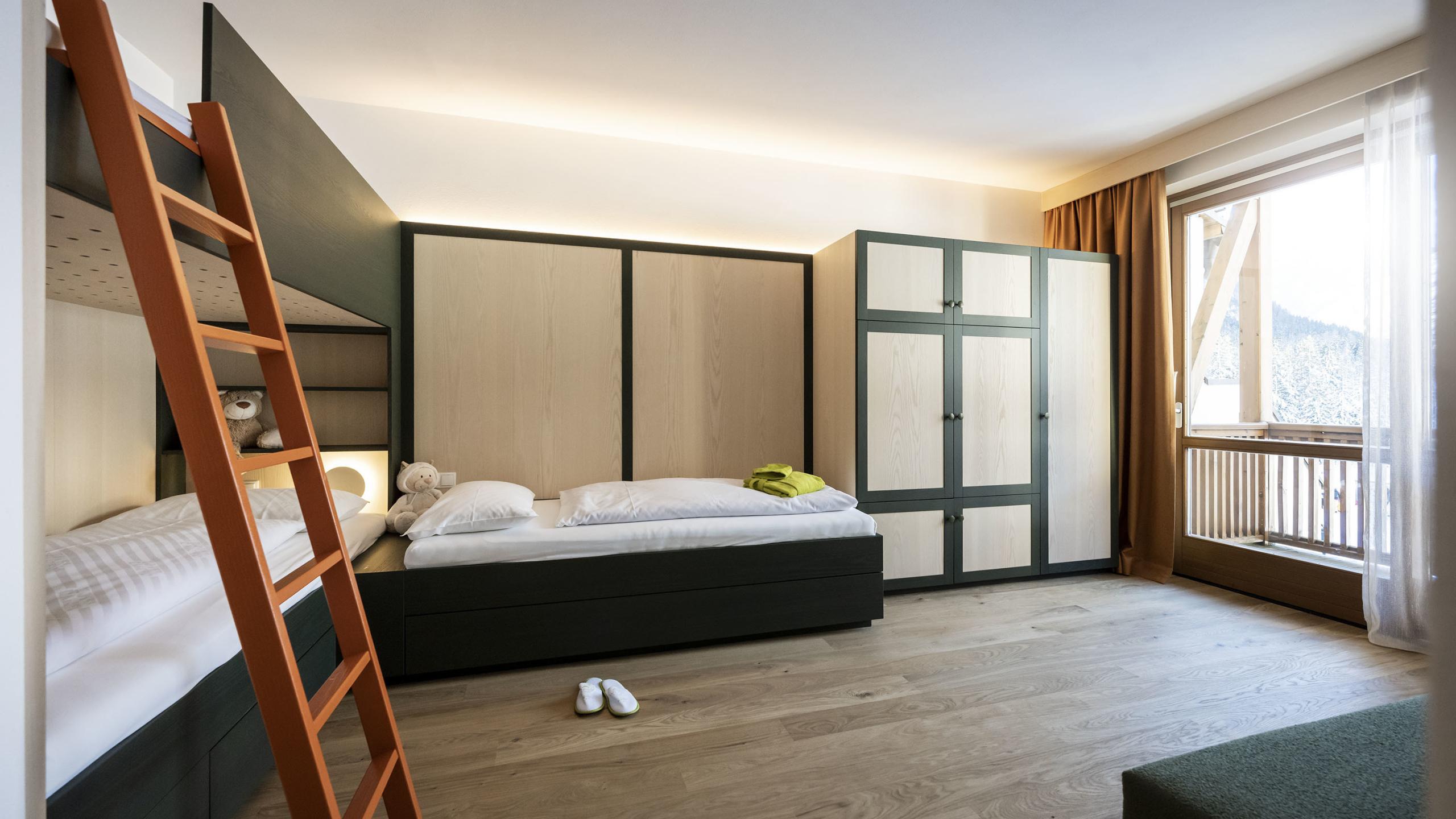 Spacious family suite with kitchenette, two bathrooms and panoramic terrace with views of the Sexten Dolomites