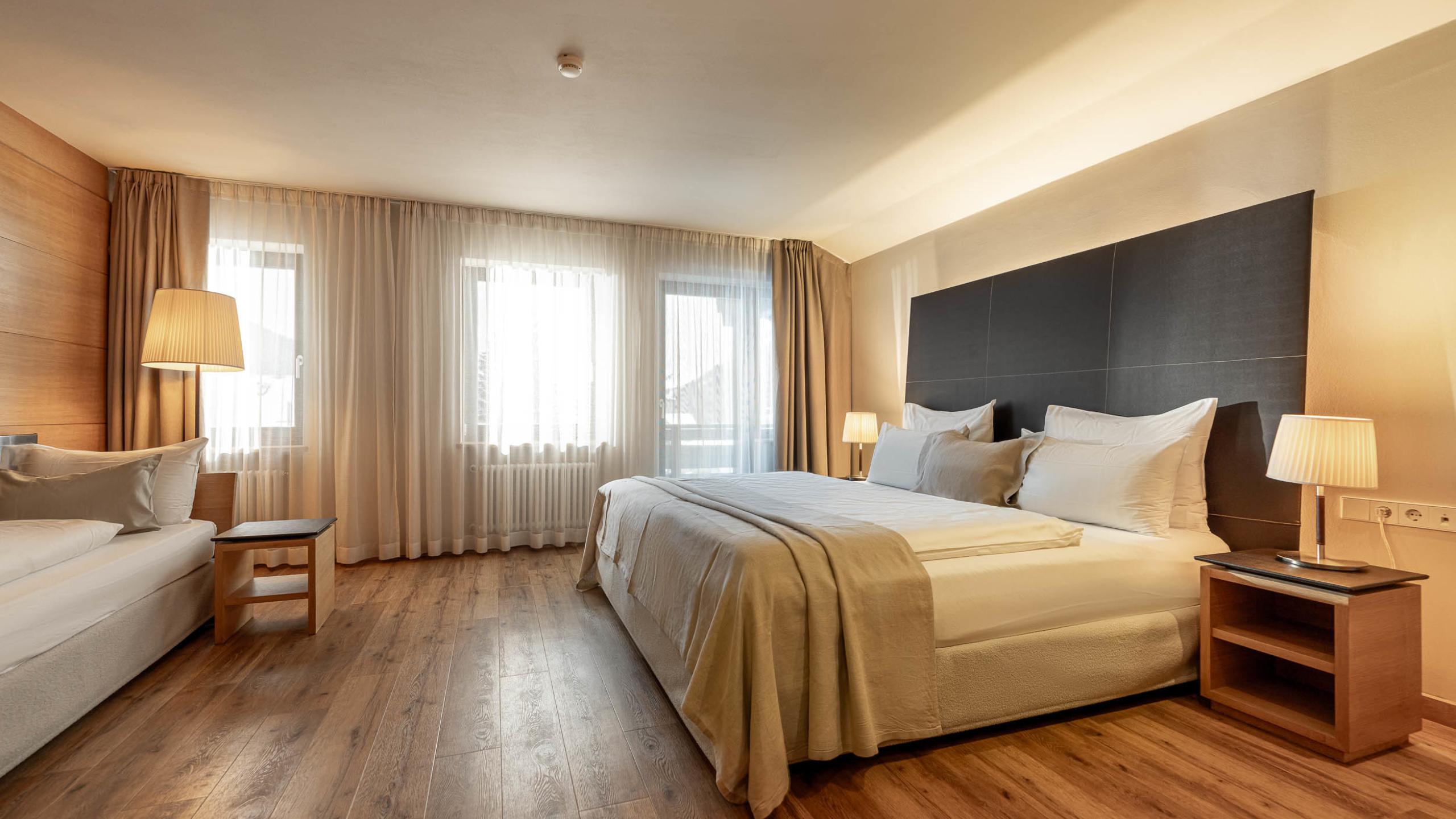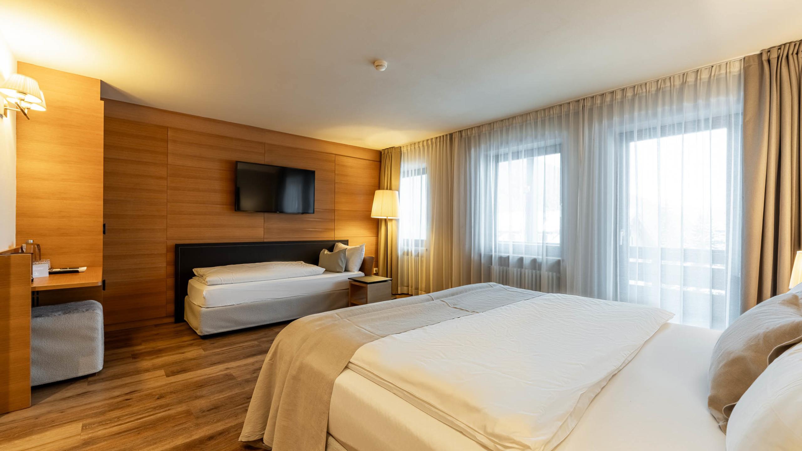 An elegantly furnished, very bright comfort double room with a homely living area and a magnificent view of the Dolomites.