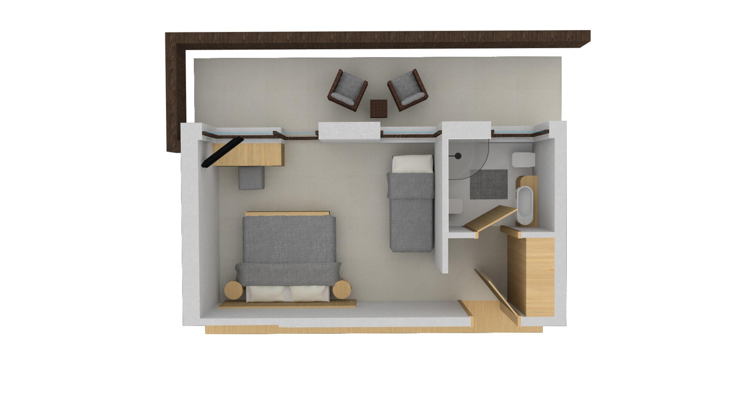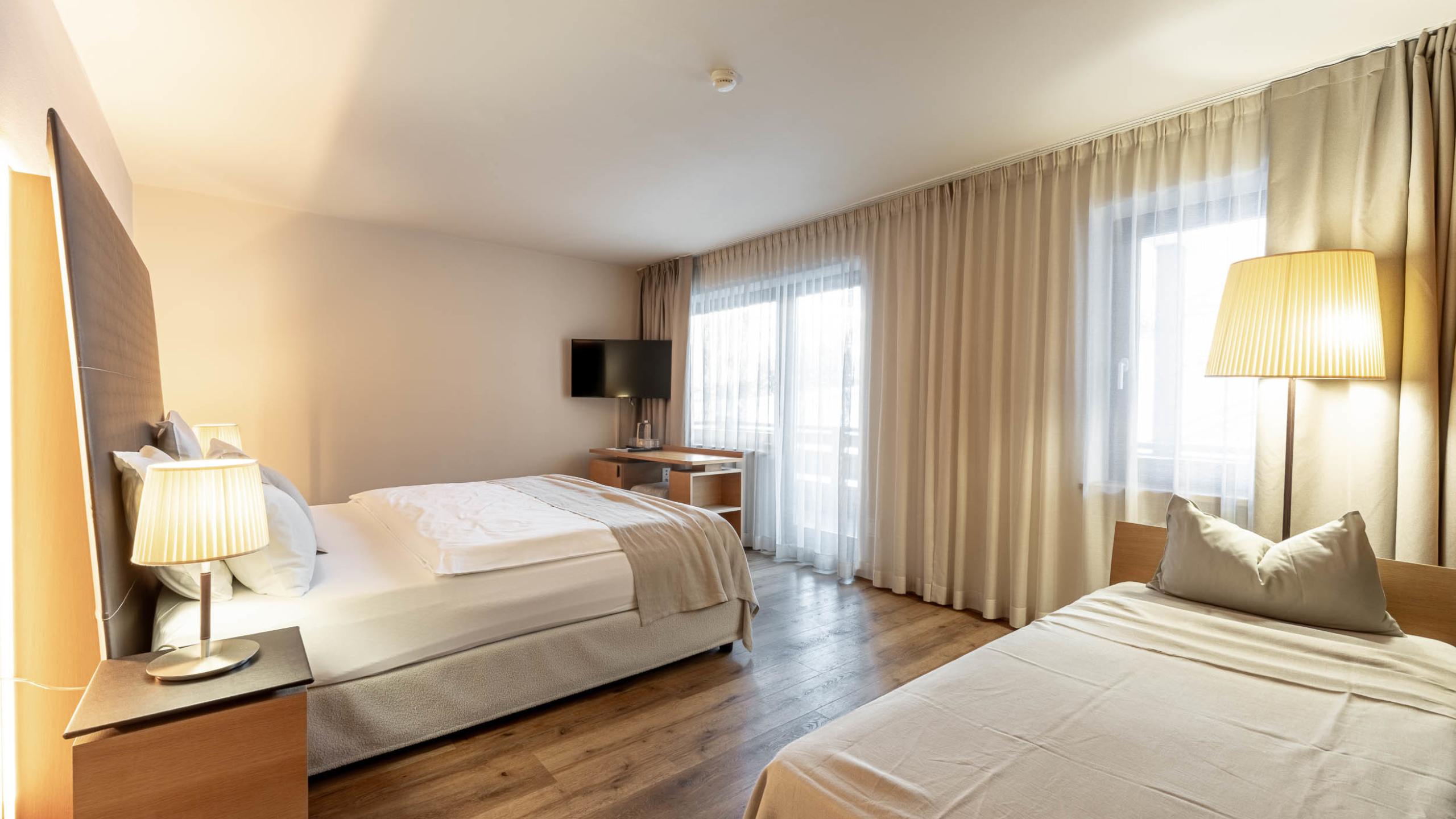 Cosy double room with magnificent view of the valley and in winter of the ski slopes.