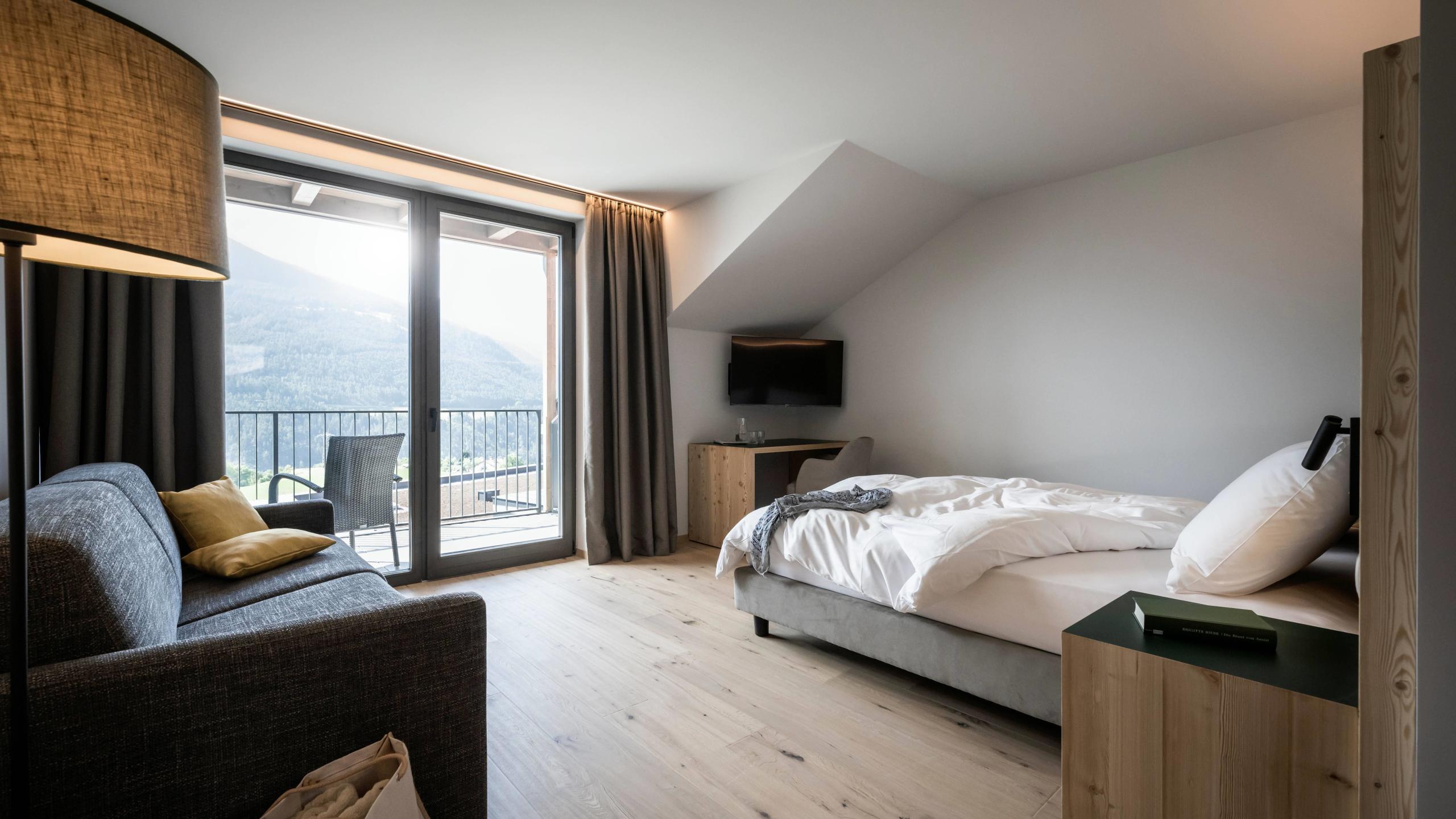 Cosy, comfortable, and absolutely beautiful is how we would describe this newly rebuilt room pull-out double sofa bed with mattress, desk, balcony, and natural oak wood floor for families that love to set out and explore the world.
