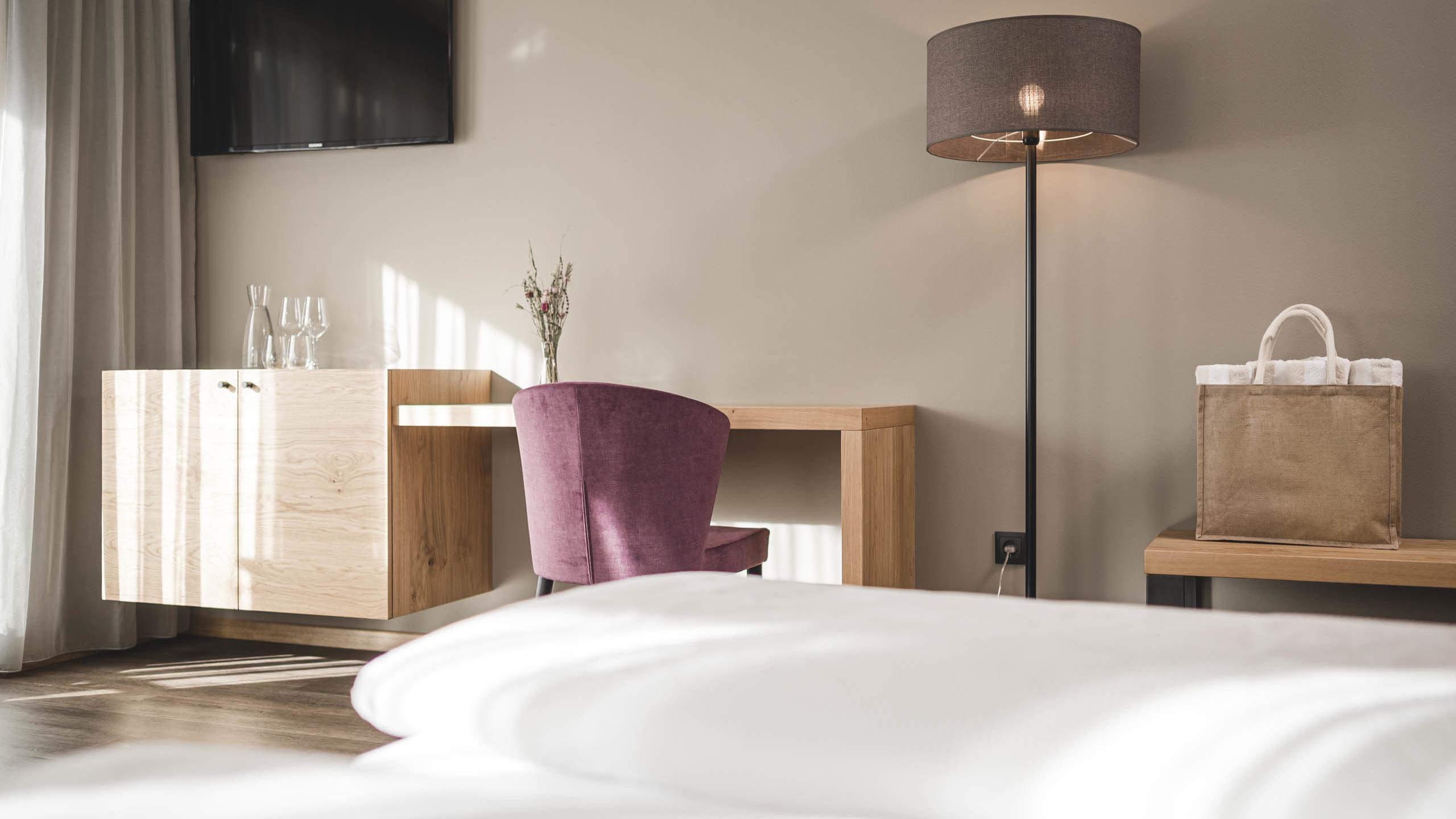 You stay in the sunlit room on the garden side, this room promises relaxation and well-being and from the balcony you can enjoy the view of the valley and its mountains. Room 40 square meter in size, with double bed and additionally with a comfortable sofa beds. The children’s bunk with 2 comfortable beds (bunk bed) is separated from the parents’ room by a sliding door. Shower, hairdryer, bidet, TV, telephone, safe, balcony, pets on request.