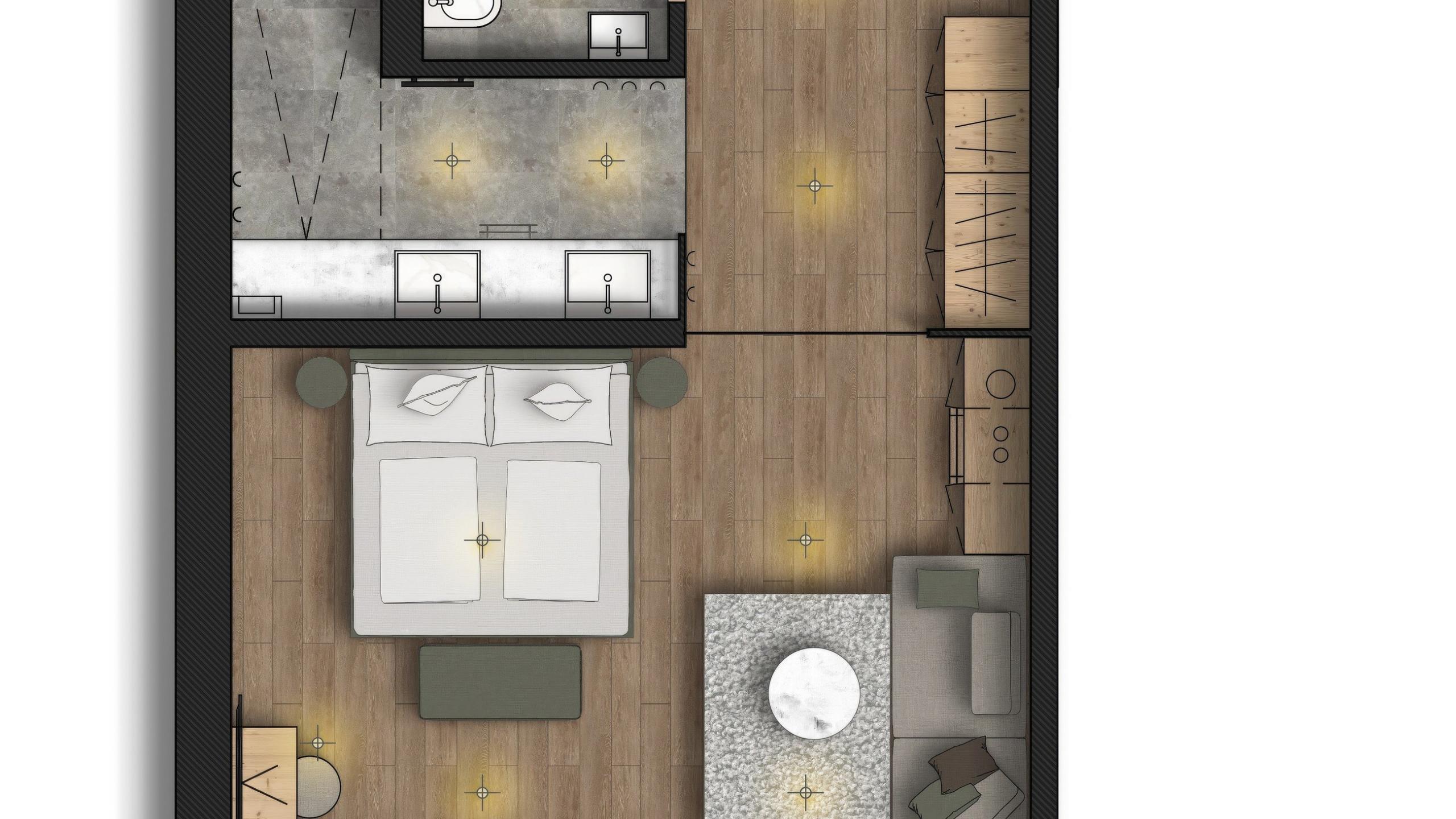 Minibar, kettle, coffee machine, tea station, coffee tabs, WLAN, smart TV, telephone and safe, hairdryer, make-up mirror and high-quality r30 care products, backpack & free underground car park.