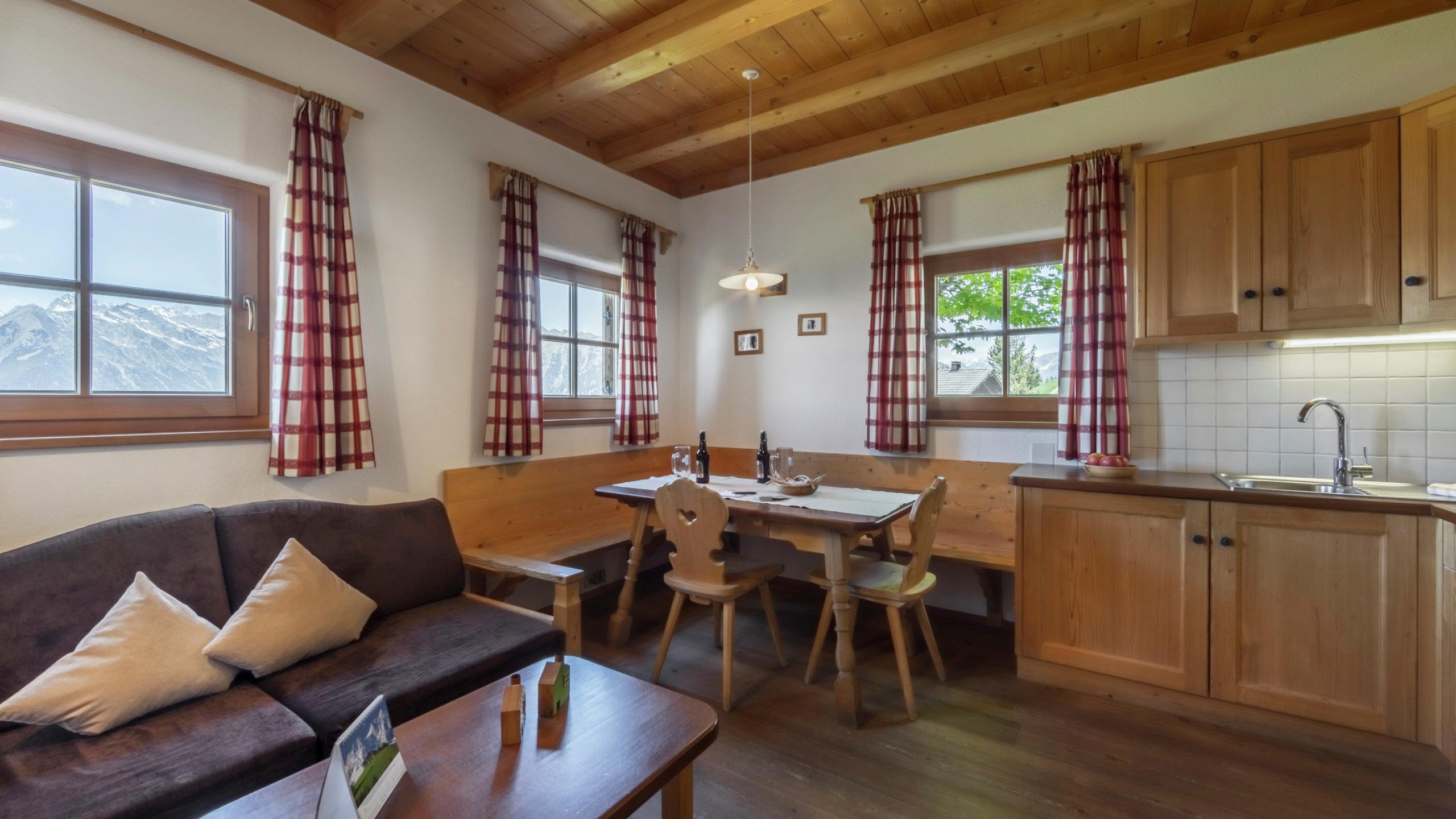 Das Chalet Zielspitze mit 52 m² befindet sich im Parterr und verfügt über einen kleinen Gartenbereich sowie zwei getrennte Schlafzimmer: Elternschlafzimmer und Kinderzimmer mit Stockbett, Vorraum, Badezimmer, Bidet, Föhn, getrenntes Tages WC, Wohnbereich mit Kochniesche, Kachelofen, Safe, Telefon, Internetanschluss und WLAN, Sat-TV sowie Baby- und kindergerechte Austattung.