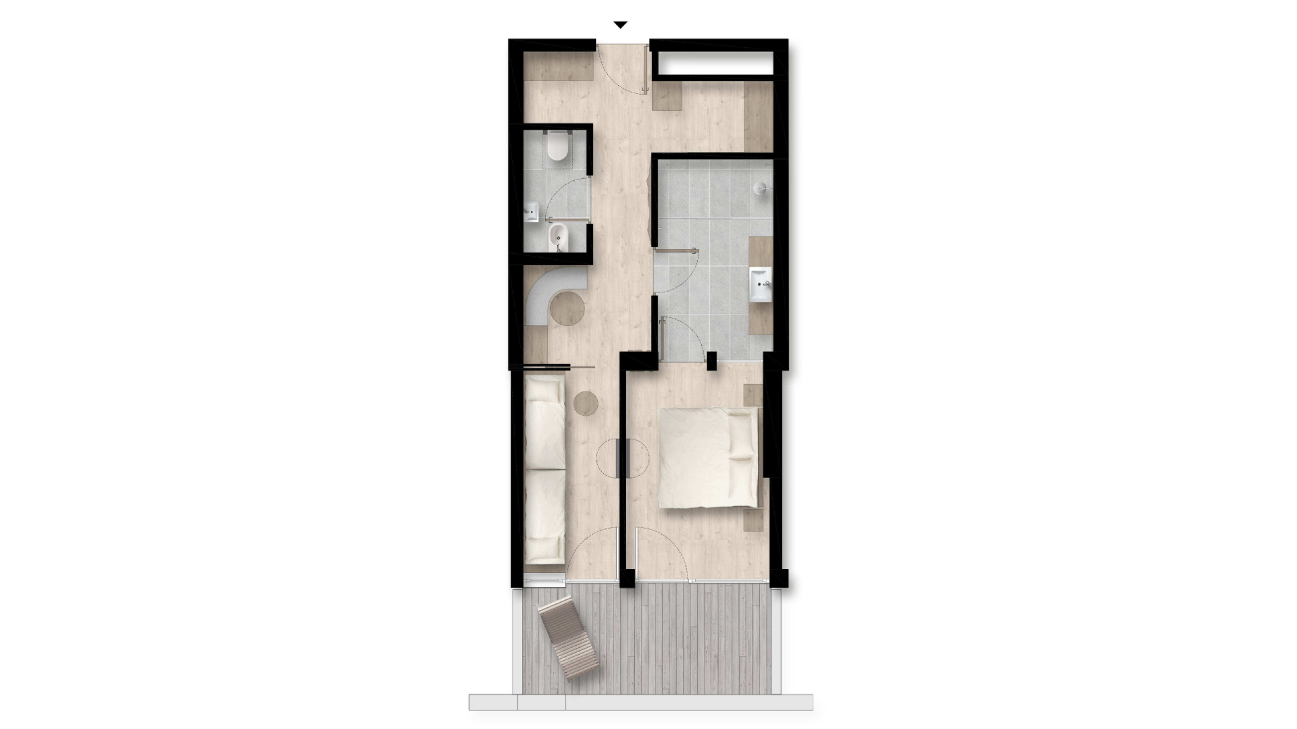 Südseite, 2-Raum-Suite: Kinderzimmer mit zwei Einzelbetten, TV, getrenntes Elternschlafzimmer, TV, separate Wohnecke, Minikühlschrank mit Kaffee - und Teebar, Mikrowelle, Telefon, Safe, Balkon. Badezimmer mit großzügiger Dusche, getrenntes WC mit Bidet. Beide Räume haben Zugang zum Balkon.