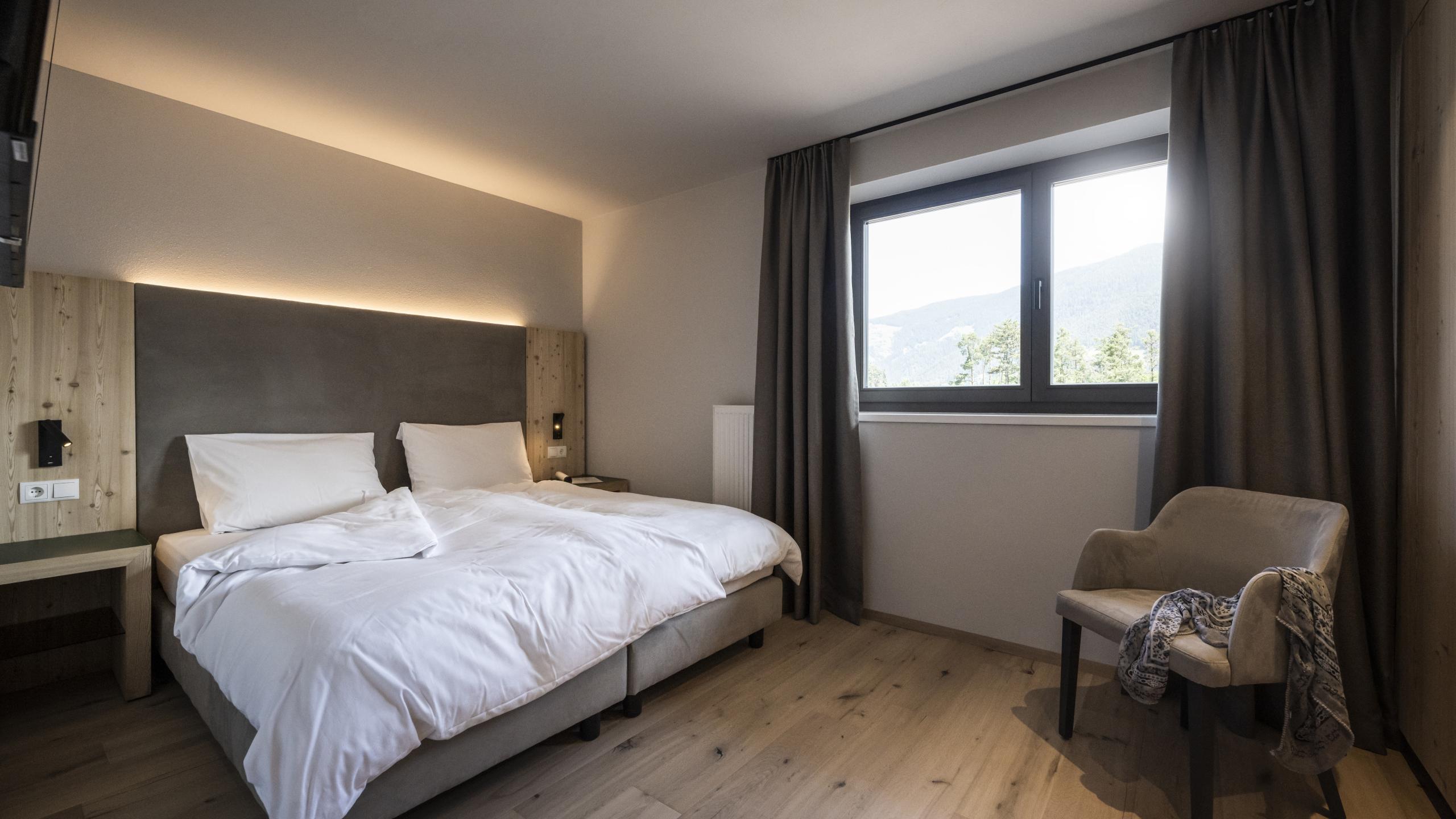 In dieser großzügigen Familiensuite kuscheln sich Kinder abends in die Kinderkoje im Wohnbereich. Die Eltern schlafen ganz entspannt im separaten Doppelzimmer, getrenntes Badezimmer mit WC und Bidet, ein gemütlicher Tisch samt Stühlen zum Spielen, zwei Smart-TV und ein Balkon bieten viel Platz für große und kleine Urlaubsgäste.