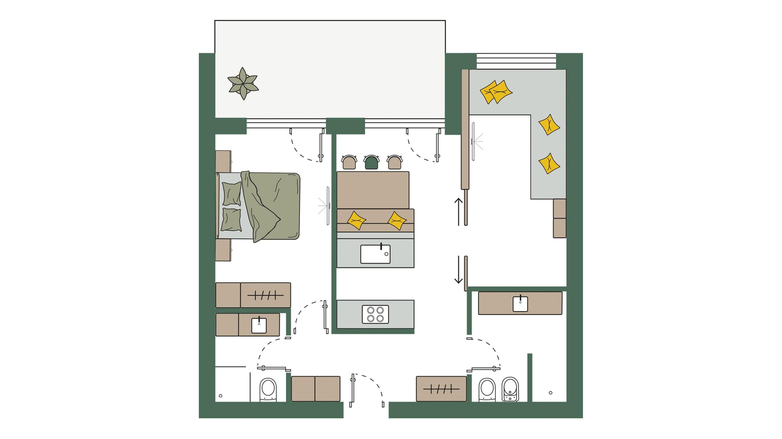 Etwas größeres Apartment für den Urlaub als Familie mit 2 oder 3 Kindern.