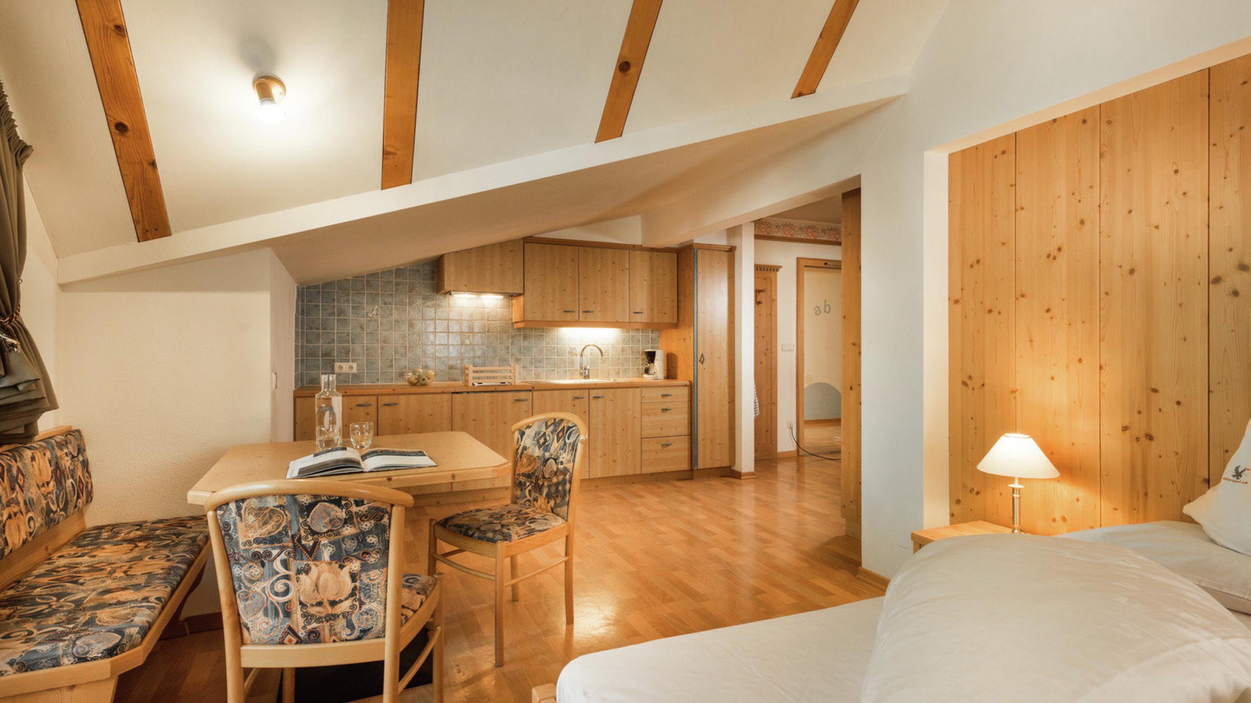Dieses voll ausgestattete Appartement 49m², bestehend aus einem Elternschlafzimmer und einem Wohn- bzw. Schlafraum mit zwei Extrabetten, ist nach dem 3.599 Meter hohen, eisüberzogenen Berg am Schnalskamm benannt. Besonders schön und praktisch: die voll ausgestattete Küchenecke, das großzügige Badezimmer und der Panoramabalkon.