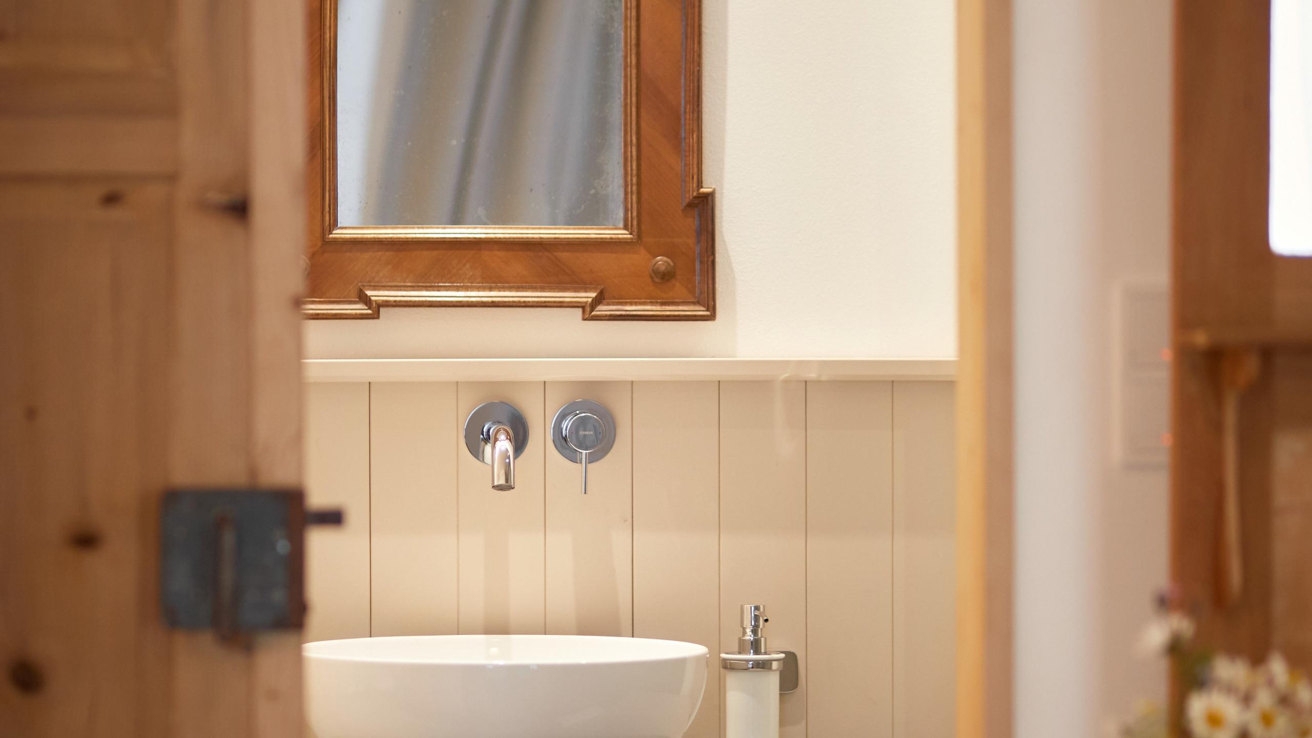 - Badezimmer mit Dusche, WC, Föhn, TV mit Sat-Empfang, Telefon und Holzboden