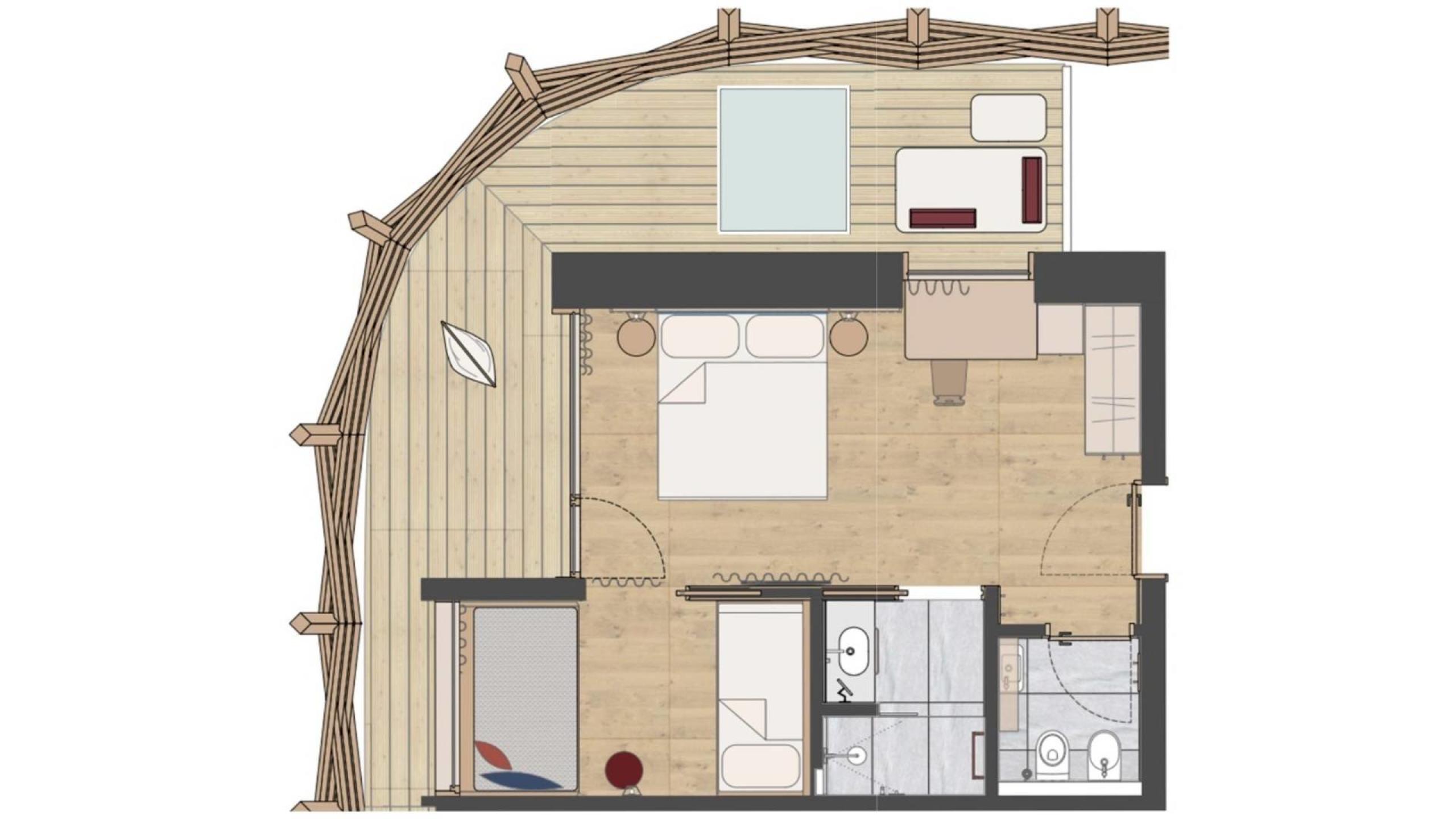 - 2-Raum-Naturholz Suite mit Schiebetür