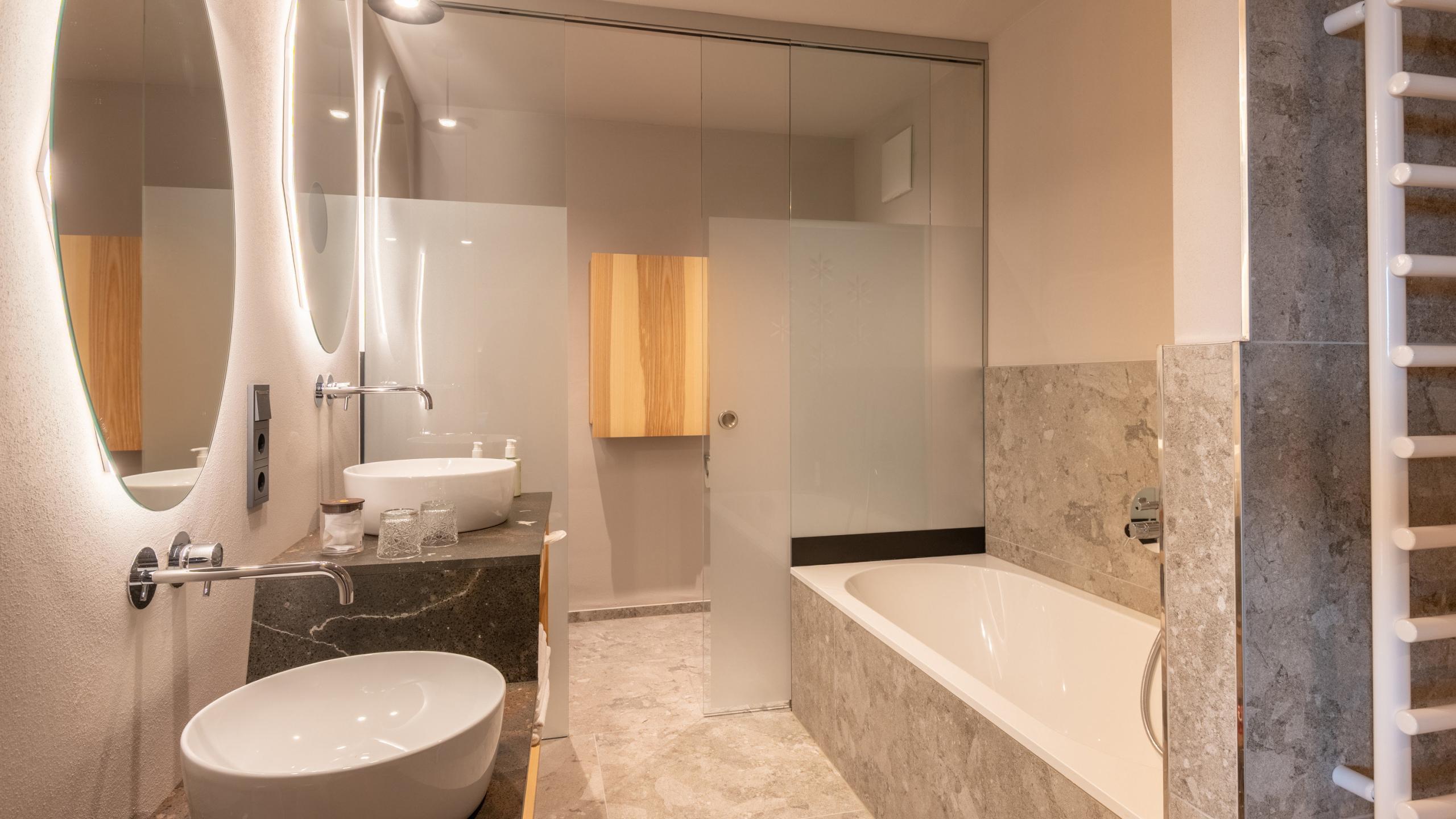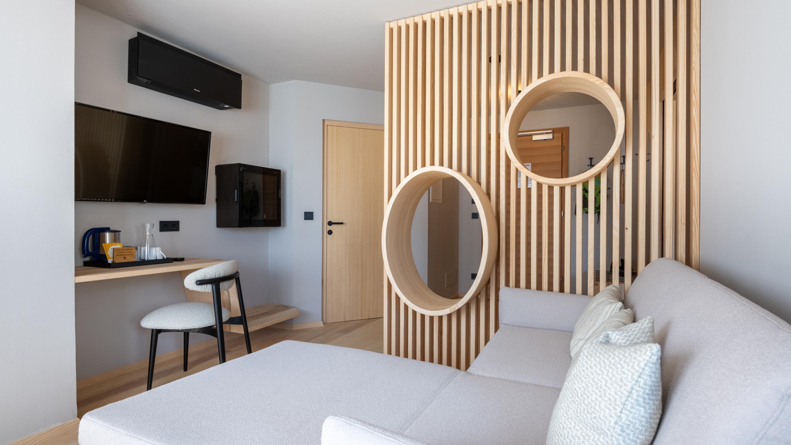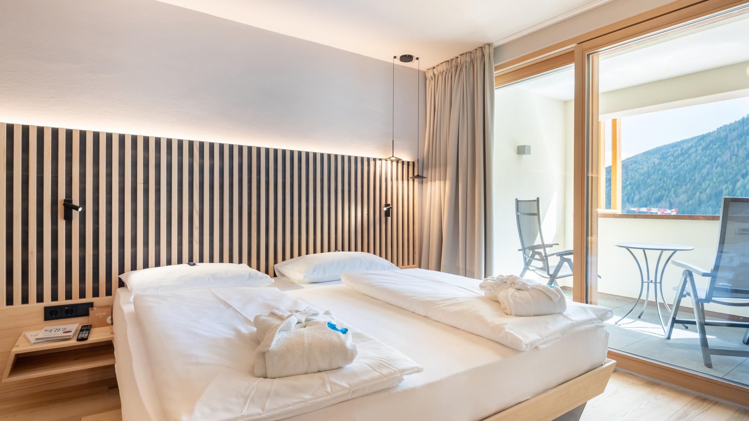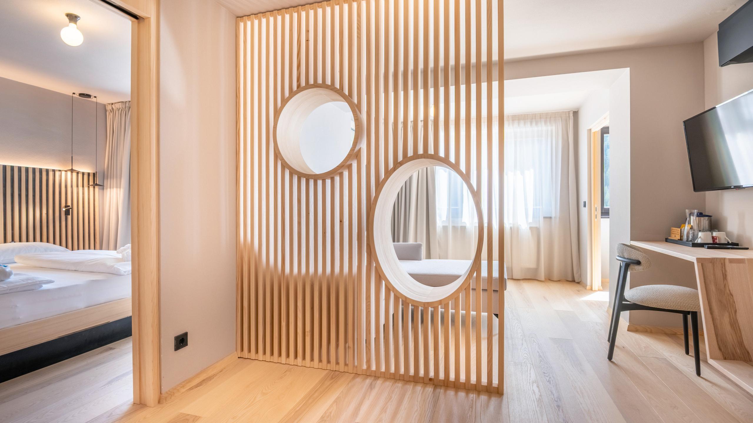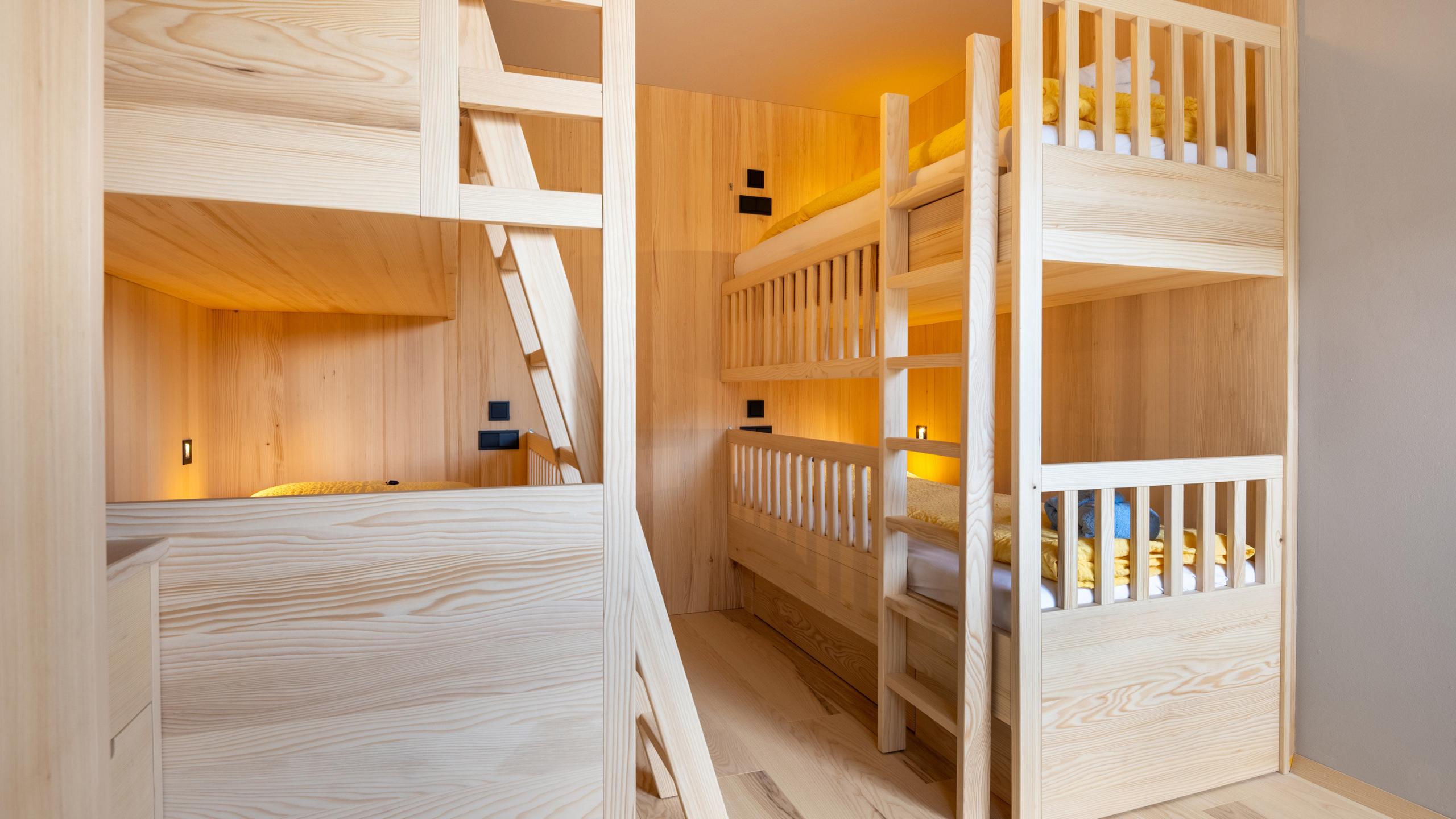 3-Raum-Familiensuite ca. 60 m², Südbalkon, Naturholzboden, Kinderzimmer mit Einzel- und Stockbetten, Badezimmer mit Badewanne und Erlebnisdusche, Eltern- und Kinderwaschbecken, WC, Bidet, Wickeltisch, Haarfön, 2 Flat-TV, WLAN, Safe, Telefon mit integrierter Babyfonanlage, Wasserkocher, Minikühlschrank, flauschiger Bademantel, Leihrucksack, Tiefgaragenplatz, Klimaanlage