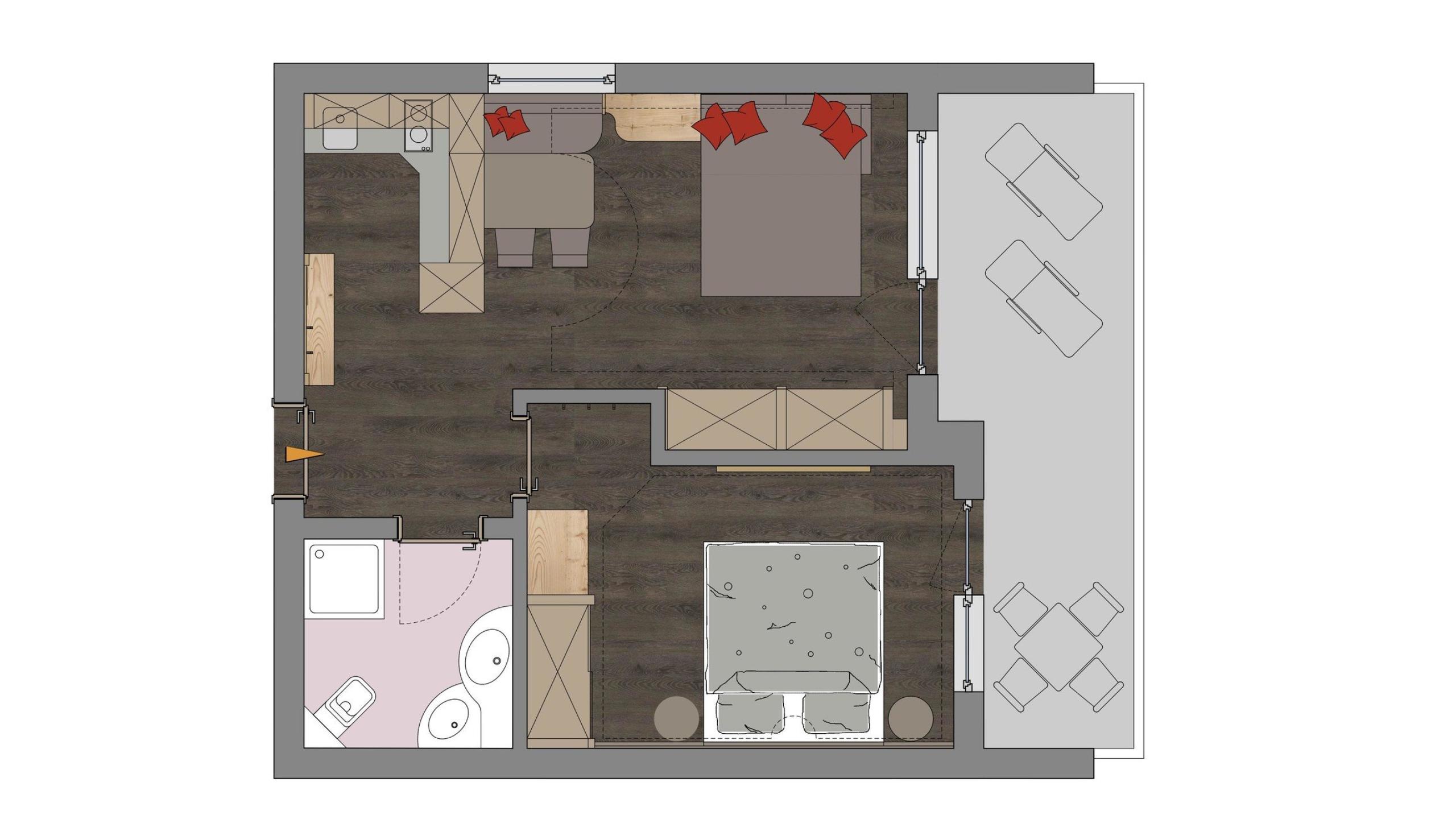 Großzügiges Zweiraum-Appartement in alpin-modernen Design und viel Liebe zum Detail mit Holz-Amticoboden.