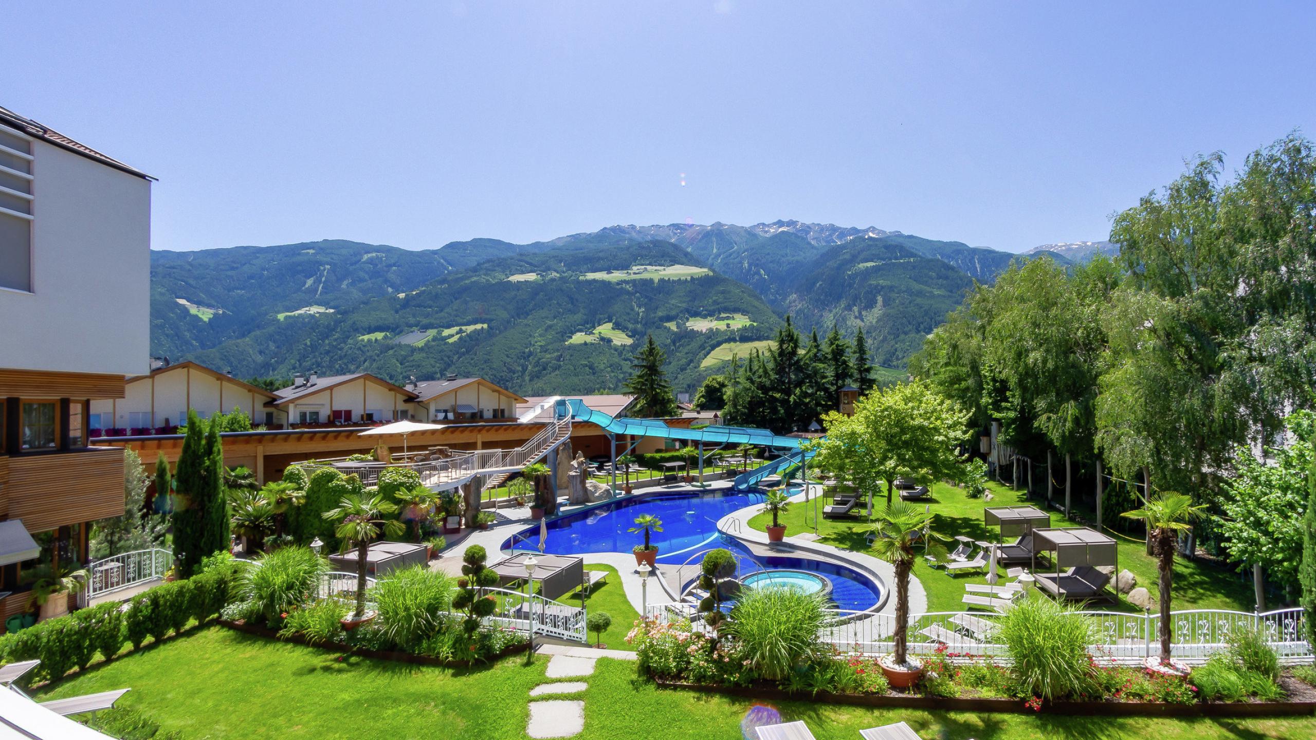• Balkon zur Süd- oder Westseite mit Liegestühlen und Gartenmöbeln