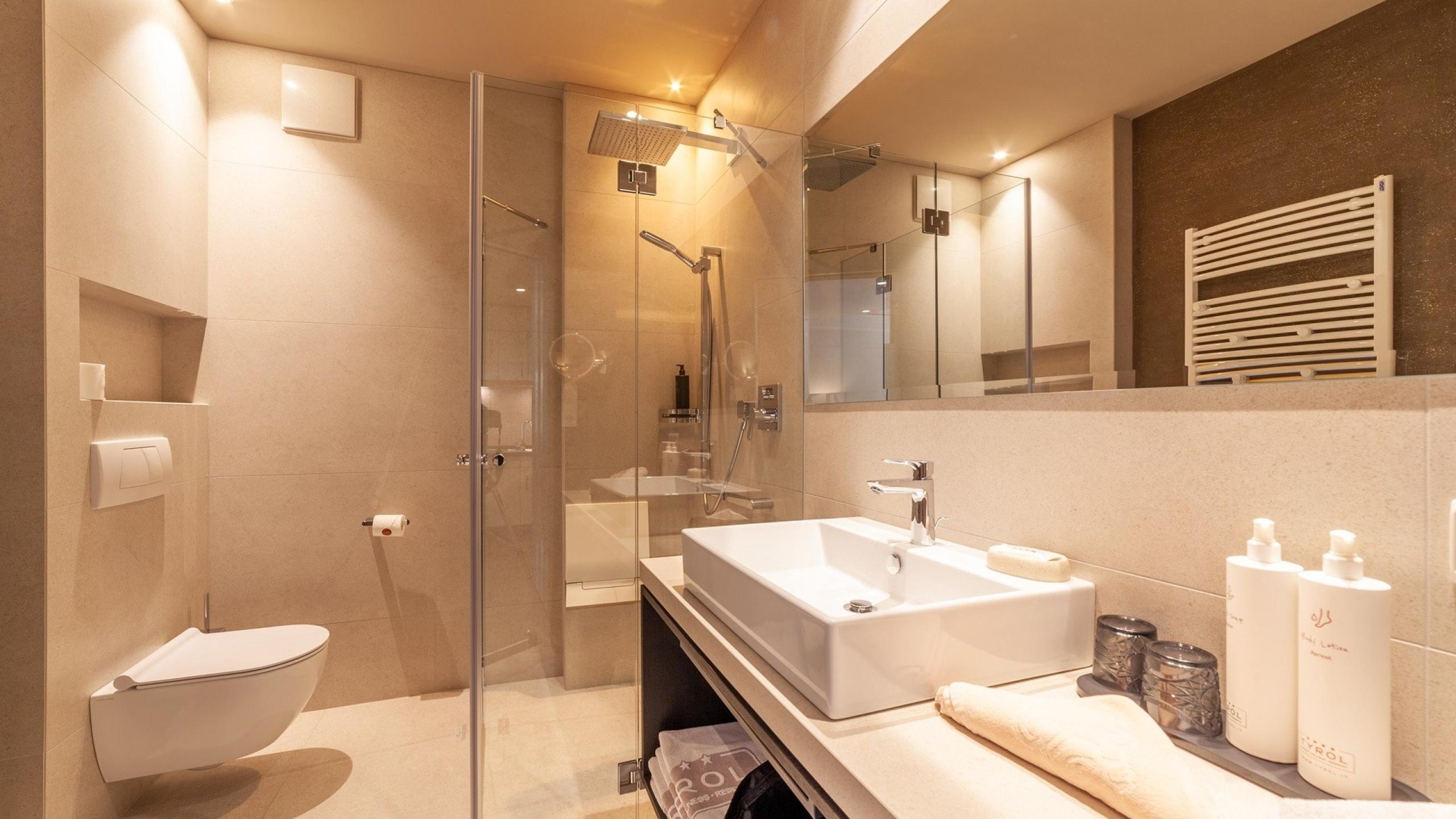• 1 Badezimmer mit Dusche und WC, Waschbecken