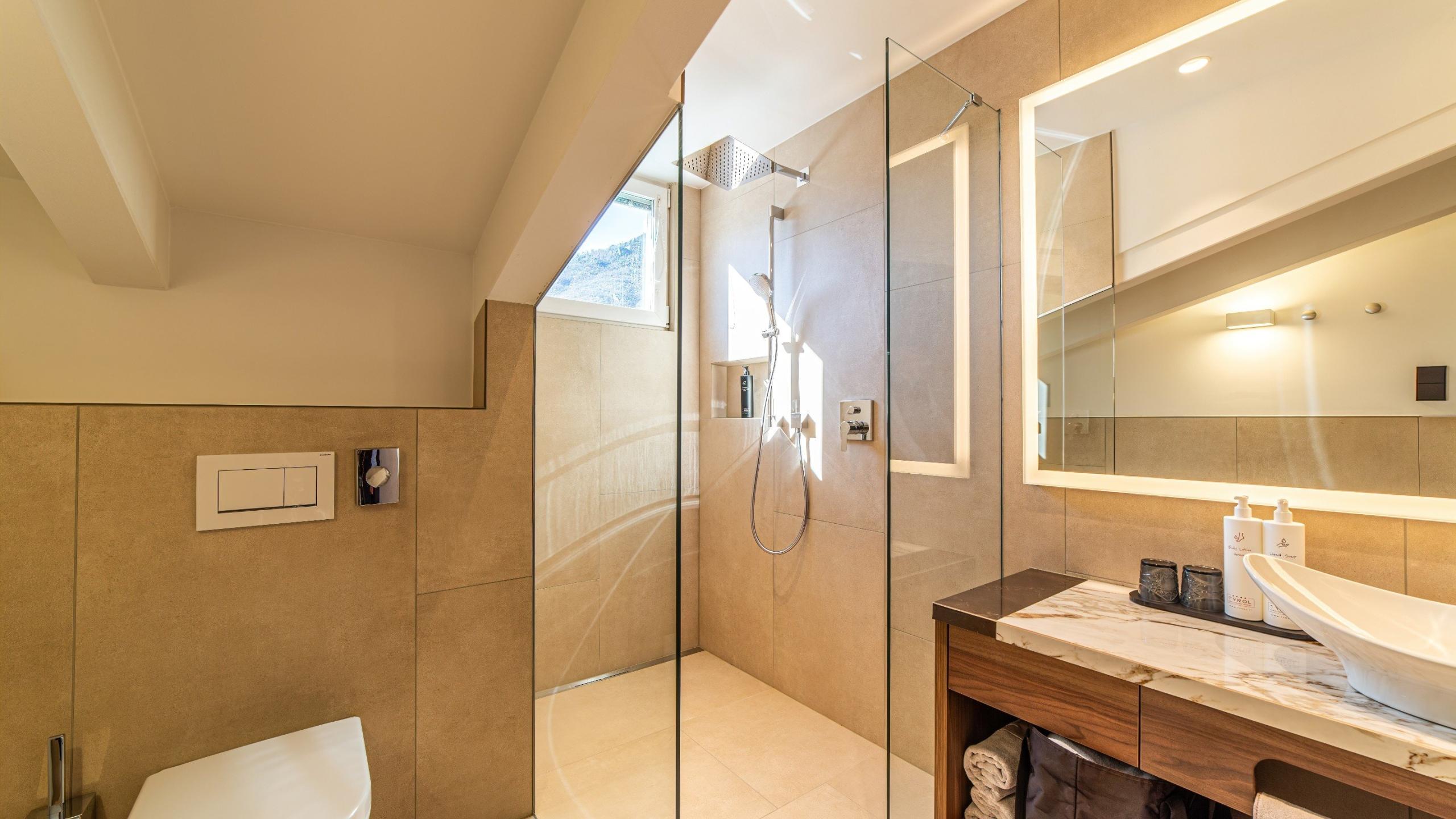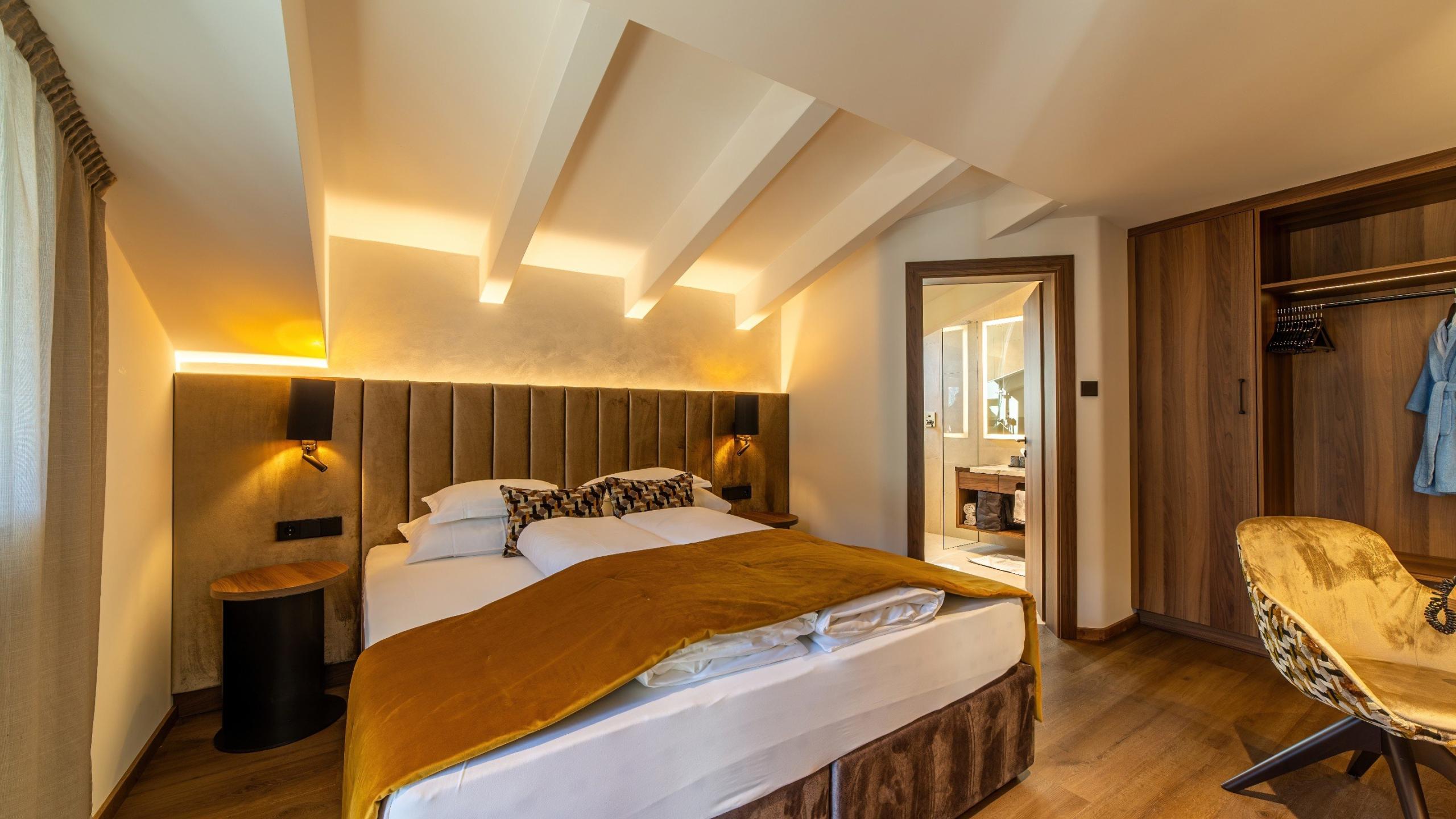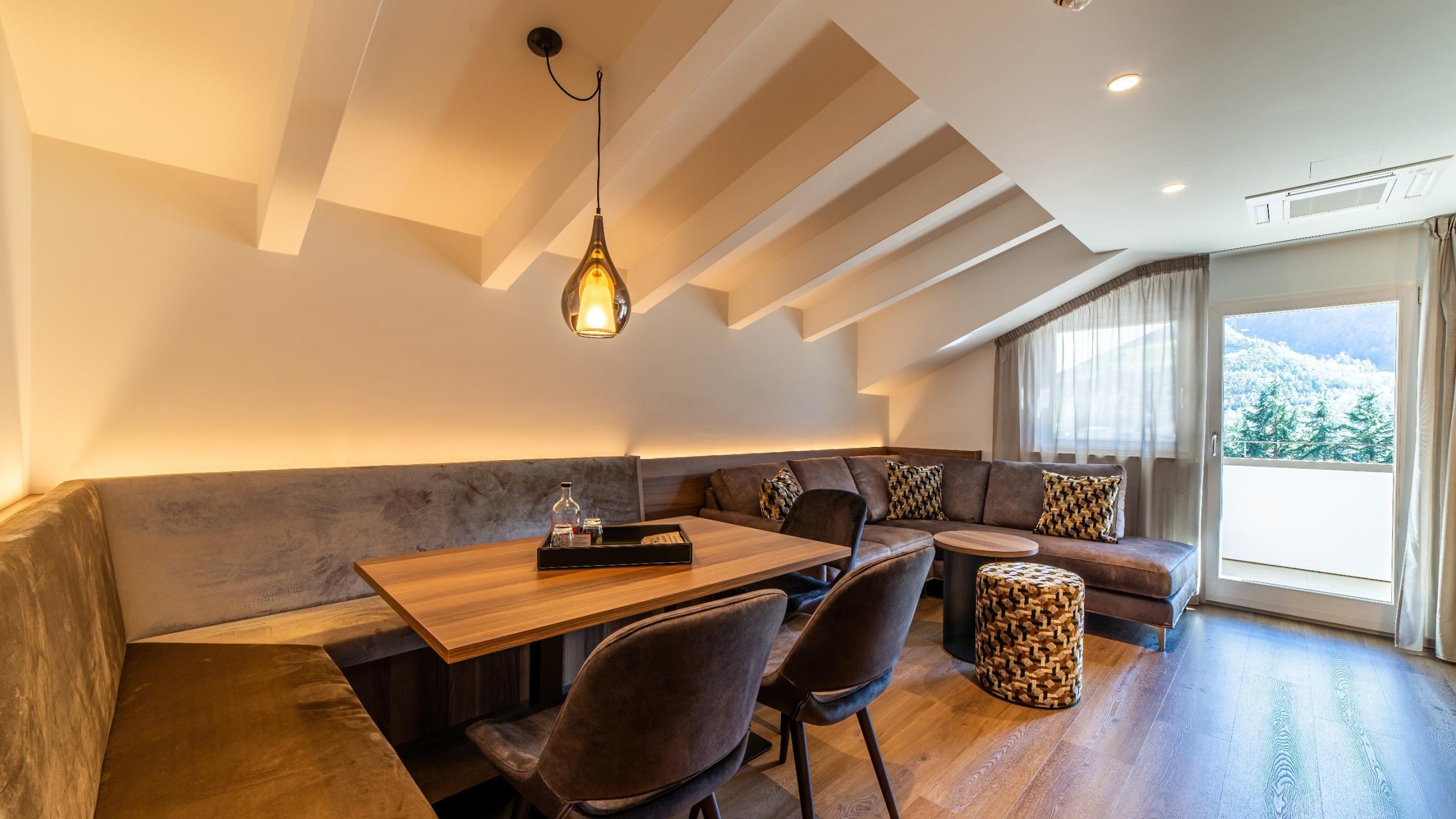 Das stilvoll eingerichtete Dreiraum-Appartement mit Holzdekorboden verfügt über ein eigenes Kinderzimmer und punktet mit seinem schönen Ausblick und der alpinen Eleganz.