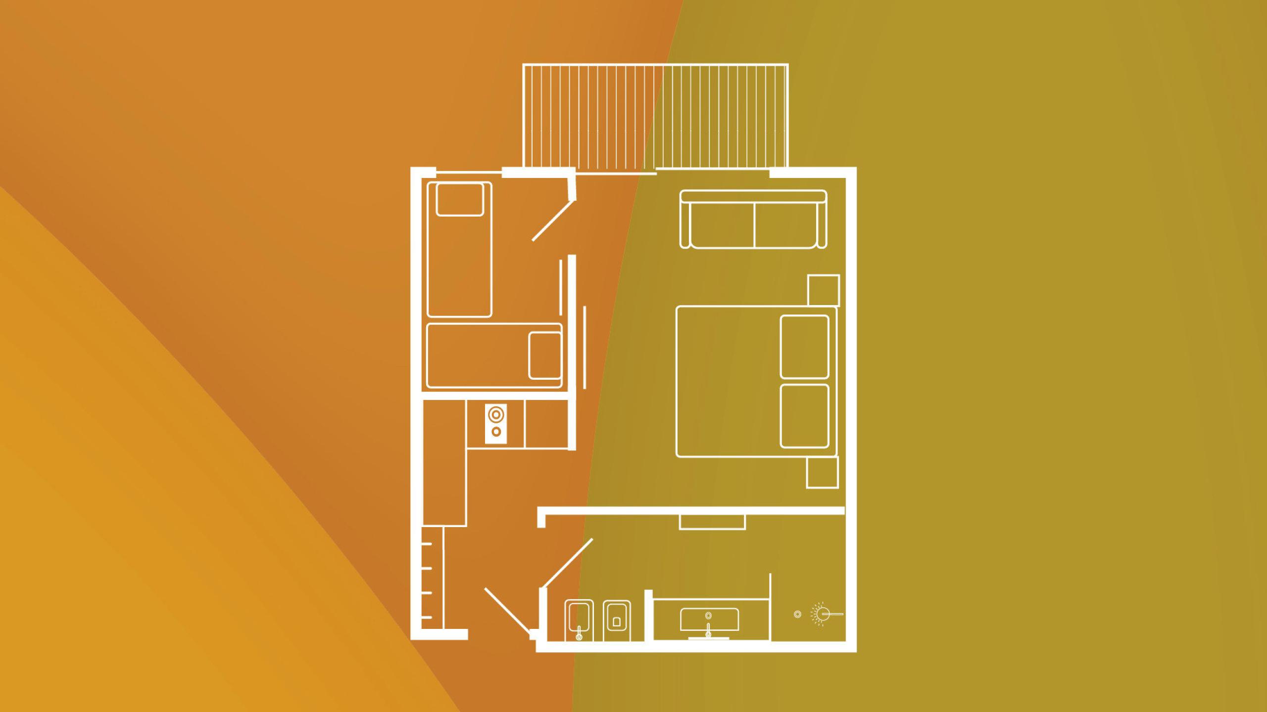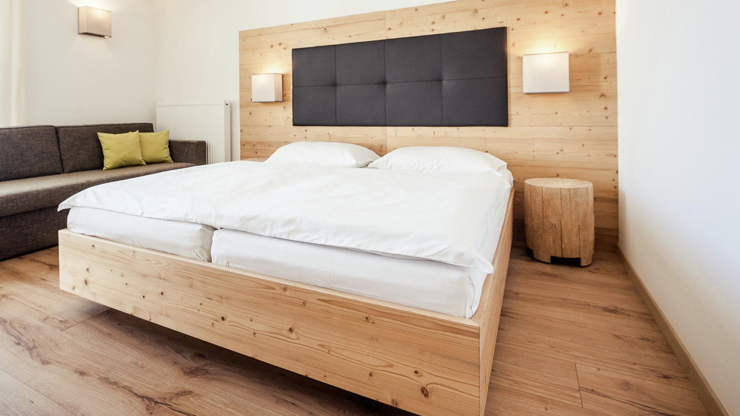 2-Raum-Zimmer | 2-4 Personen | 35 m² | Blick ins Pustertal --> Wohn-Schlafraum mit Doppelbett | Couch | Kinderzimmer mit zwei Einzelbetten | Küchenzeile | Badezimmer mit Dusche, WC, Bidet | Balkon mit Sitzmöbel