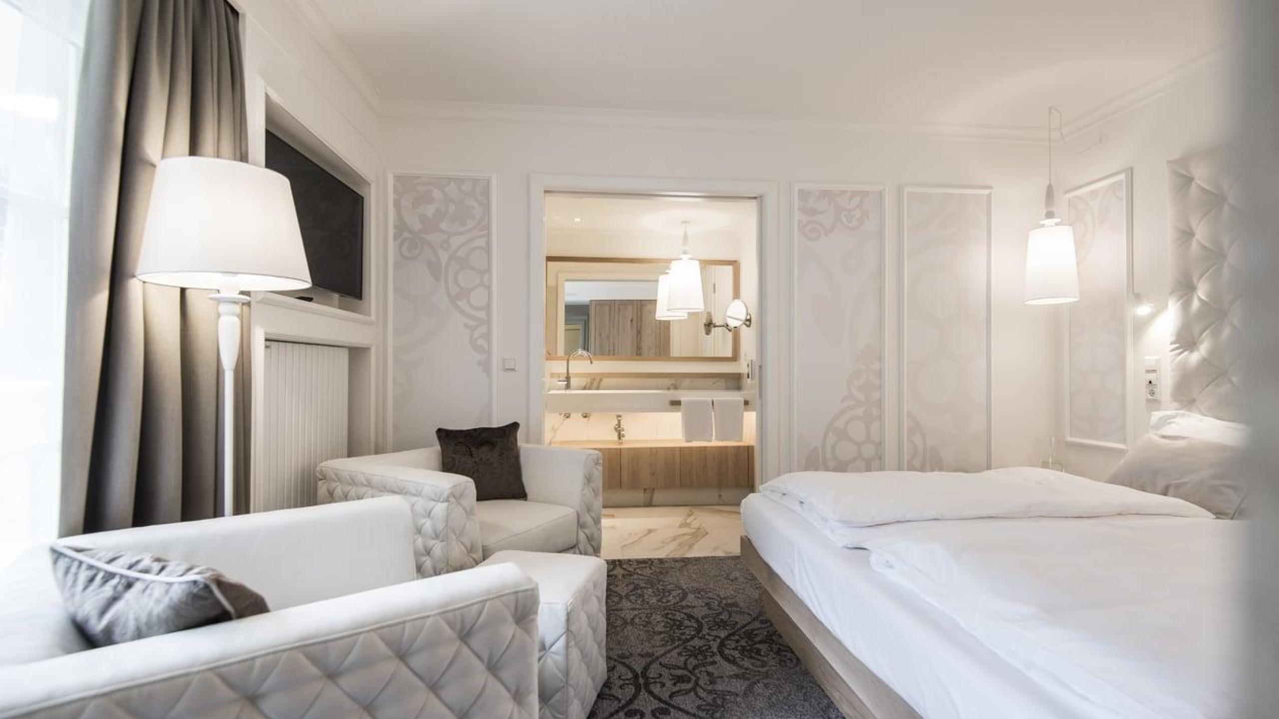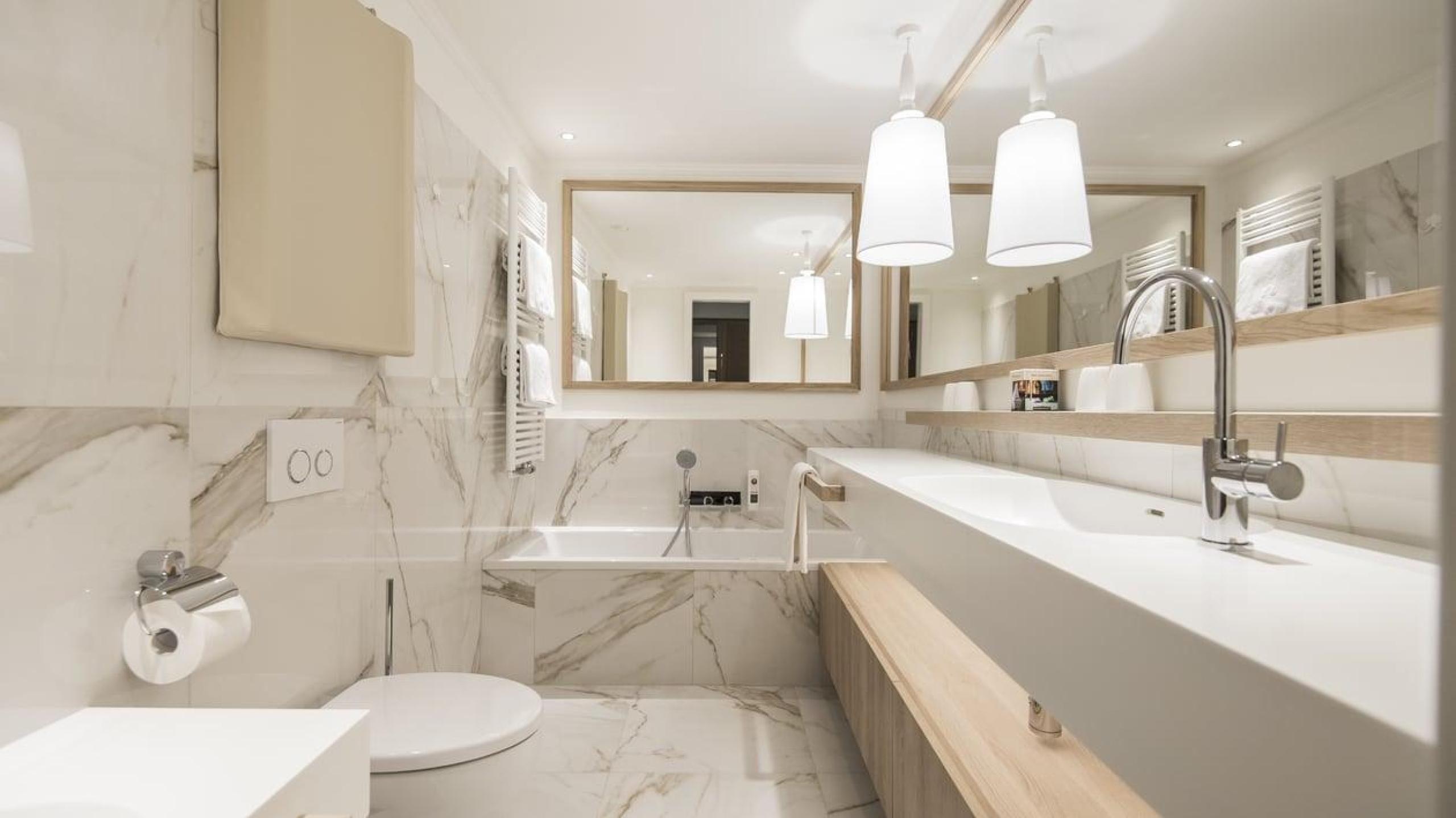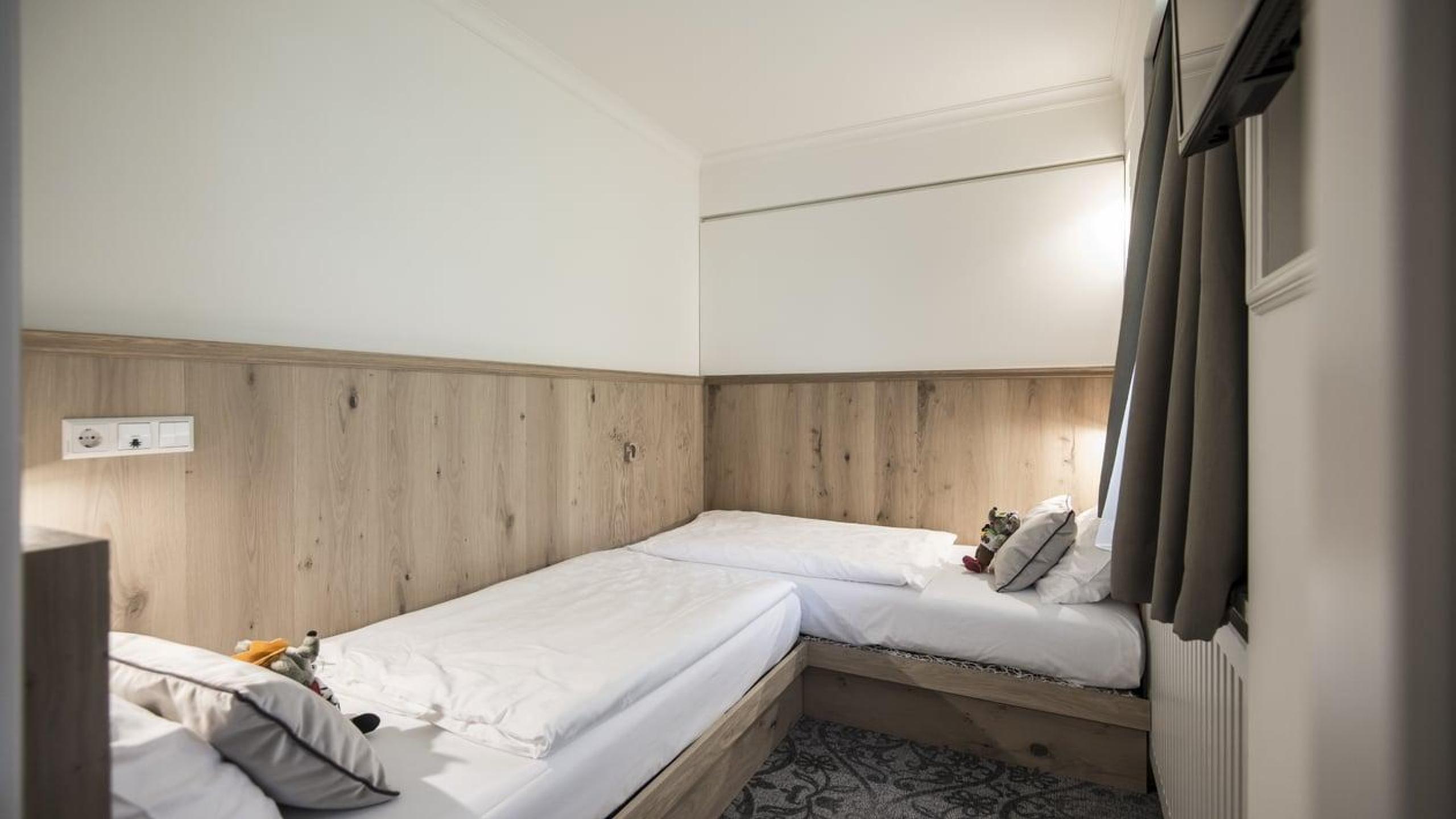 Doppelzimmer mit ausklappbarem Babybettchen, Badezimmer mit Dusche, WC und Bidet und geräumigem Wohnbereich. Schlafzimmer mit zwei separaten Einzelbetten und zusätzlichem Klappbett, Badezimmer mit Badewanne, Babybadewanne mit Wickeltisch, Kinderwaschbecken und WC. Wi-Fi, 3 TVs, Safe, Pantry mit Wasserkocher, Mikrowelle, Kühlschrank, Geschirr und Besteck. Individuell regulierbare Klima- und Befeuchtungsanlage.