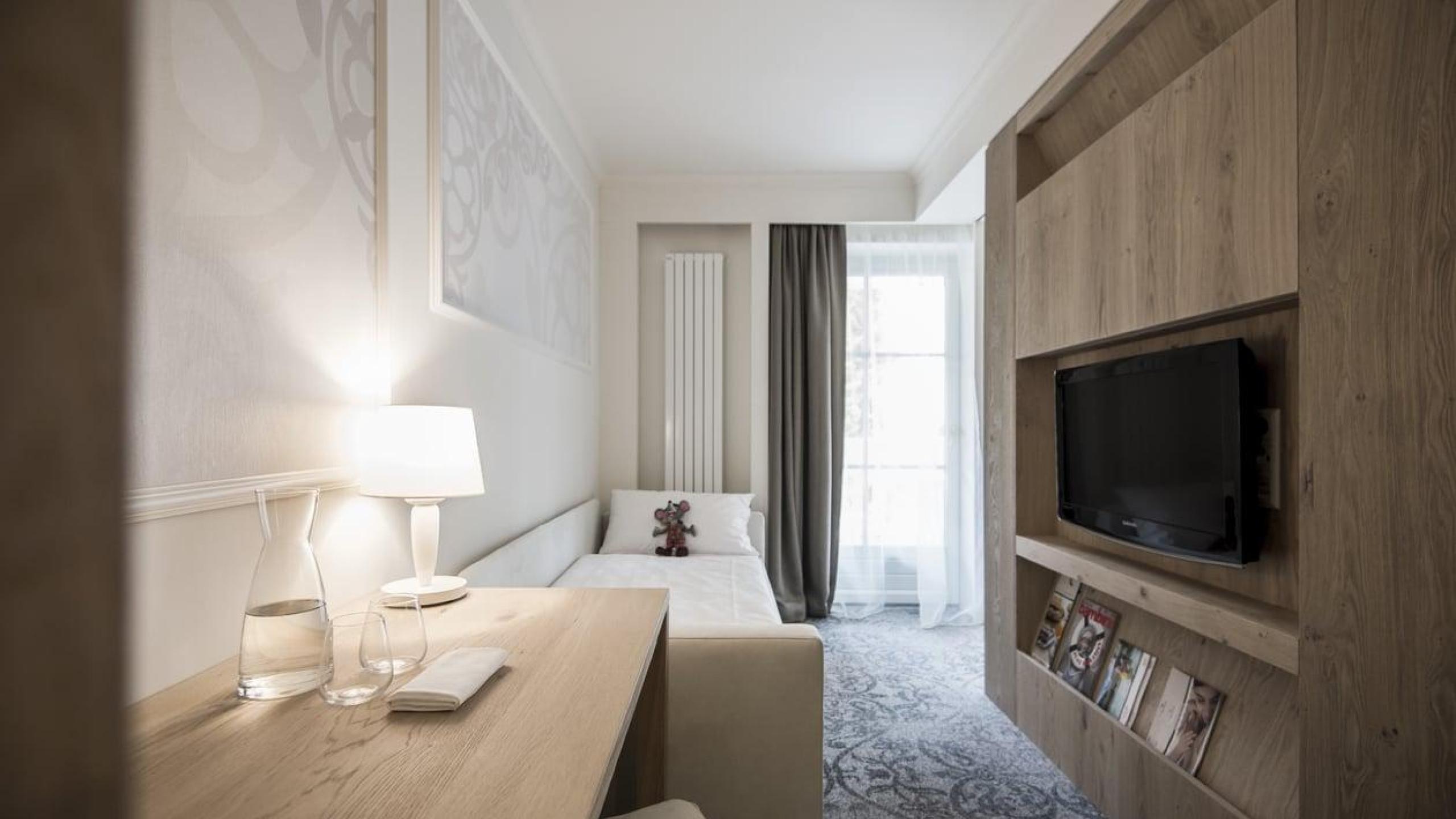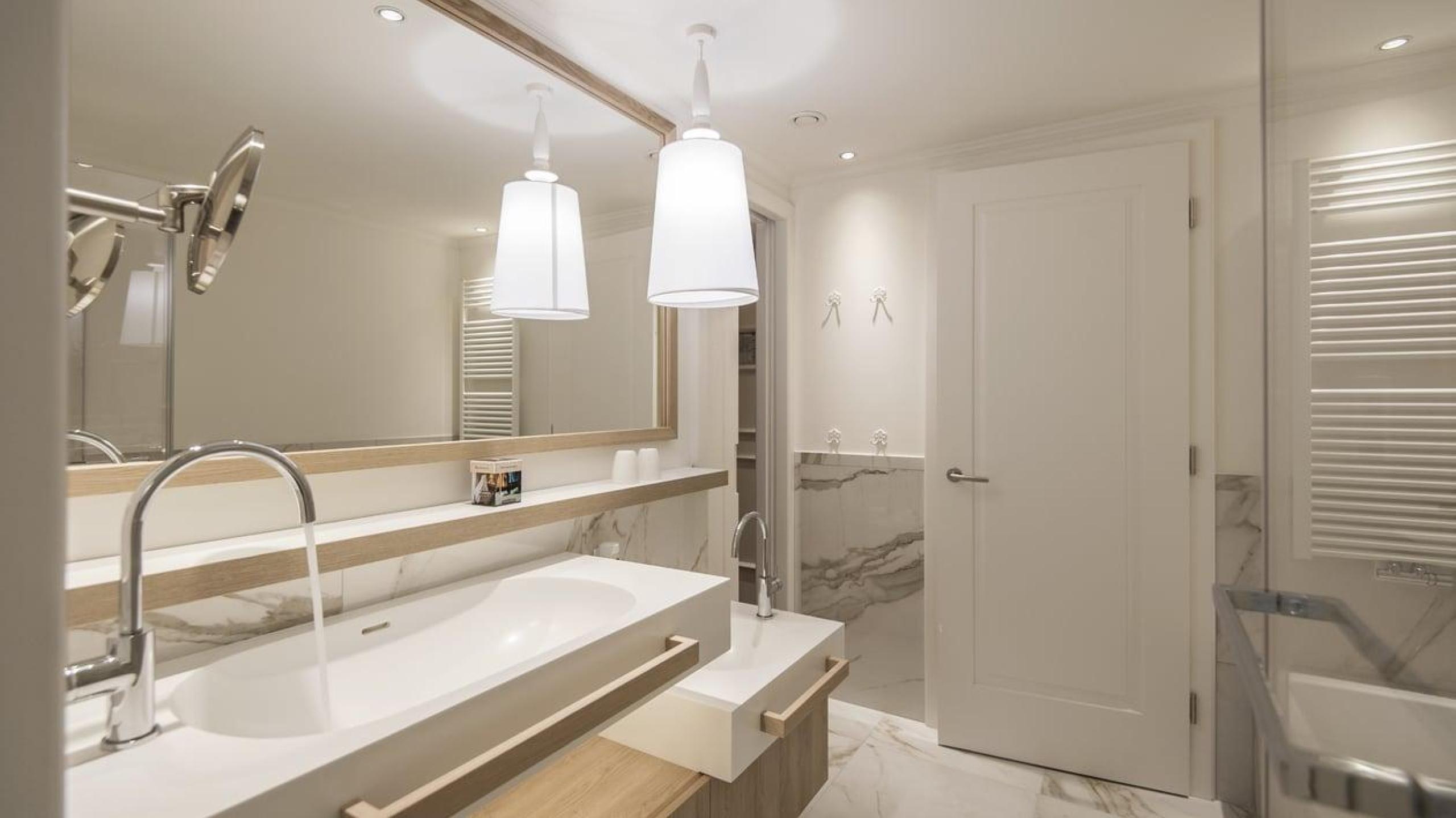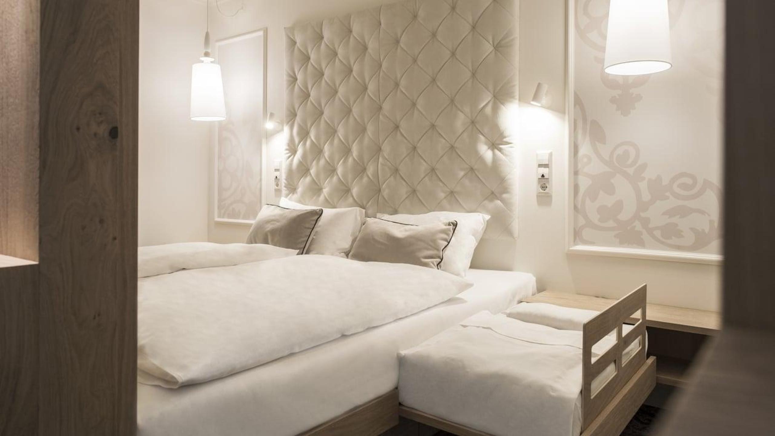 Abtrennbarer Schlafbereich mit Doppelbett, einige mit ausklappbarem Babybettchen; Einzel- oder Kinderbett, einige mit Hochbett und Schreibtisch. Badezimmer mit zwei Eingängen, Dusche, Badewanne, Babybadewanne mit Wickeltisch, Kinderwaschbecken, separates WC und Bidet. Wi-Fi, 2 TVs, Safe, Pantry mit Wasserkocher, Mikrowelle, Kühlschrank, Geschirr und Besteck. Individuell regulierbare Klima- und Befeuchtungsanlage.