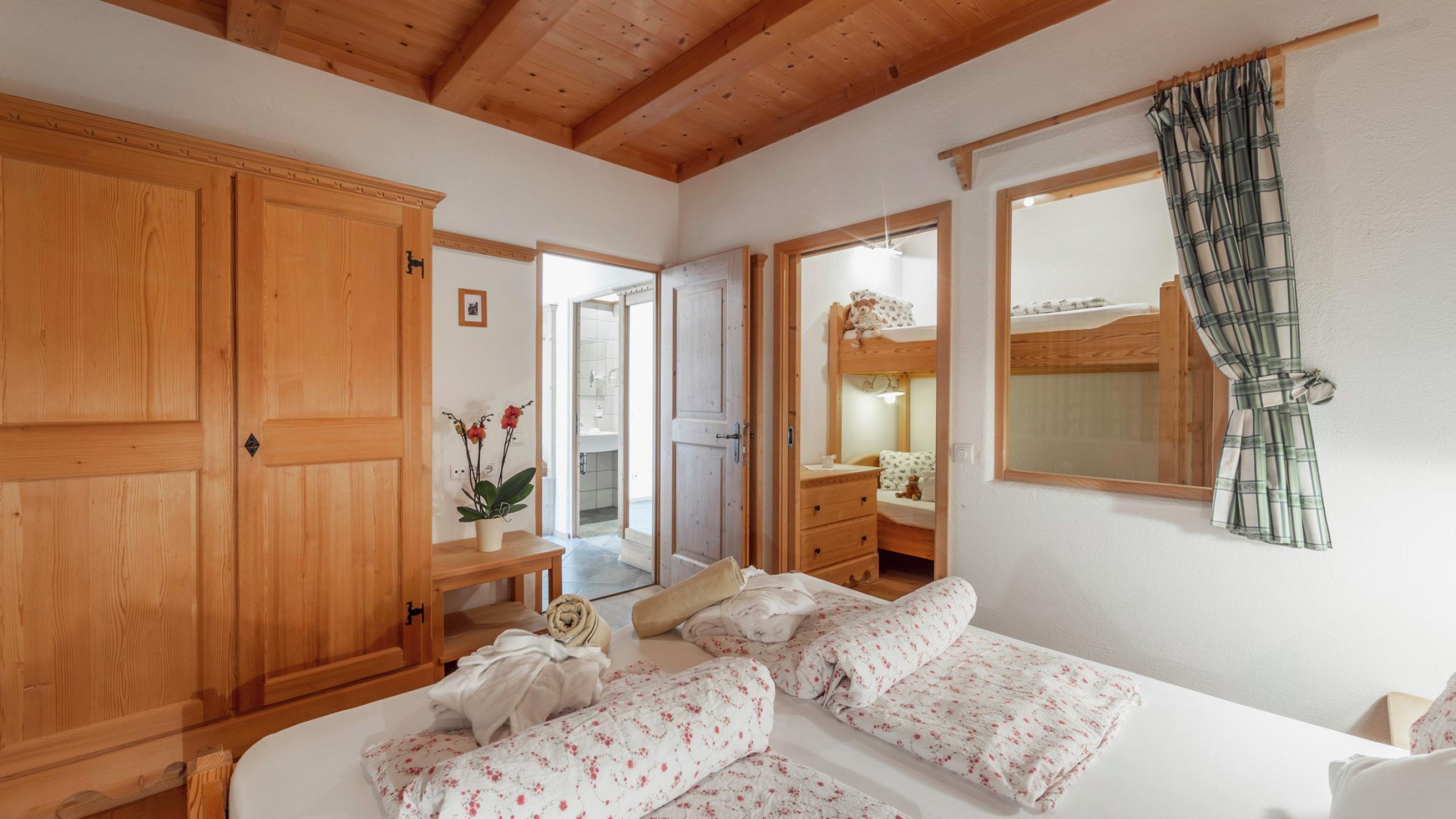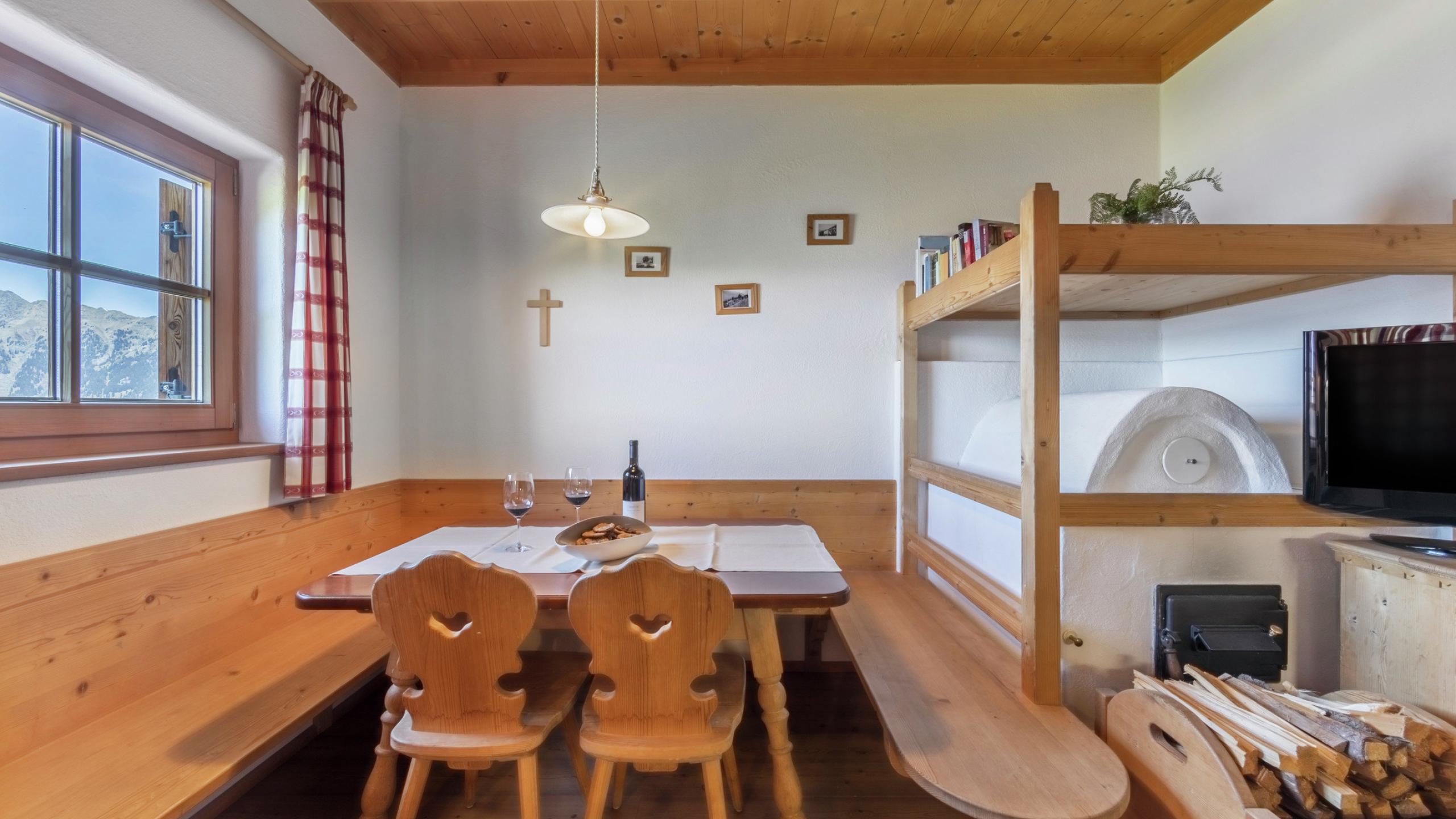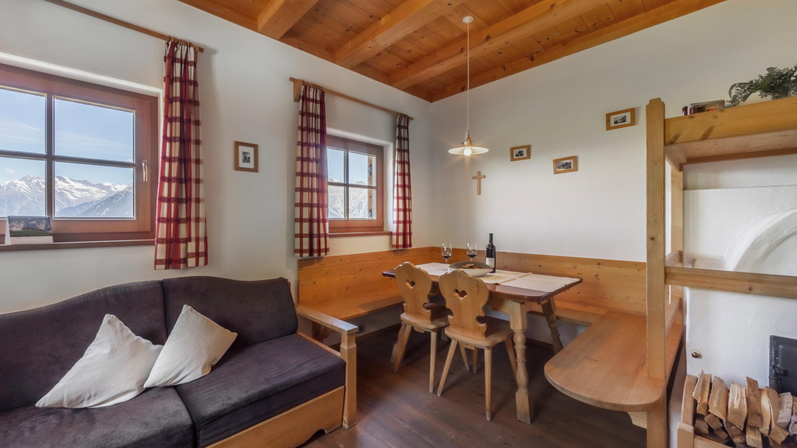 Lo Chalet Mutspitze con 44 m² si trova al piano terra e dispone di un piccolo giardino, di una confortevole camere doppia e una camera per bambini con letti a castello separata da una porta scorrevole, cucina abitabile con frigo, bagno e WC separati, bidet, asciugacapelli, stufa di maiolica, anticamera, safe, telefono, Wifi, TV e attrezzature anche per neonati e bambini.