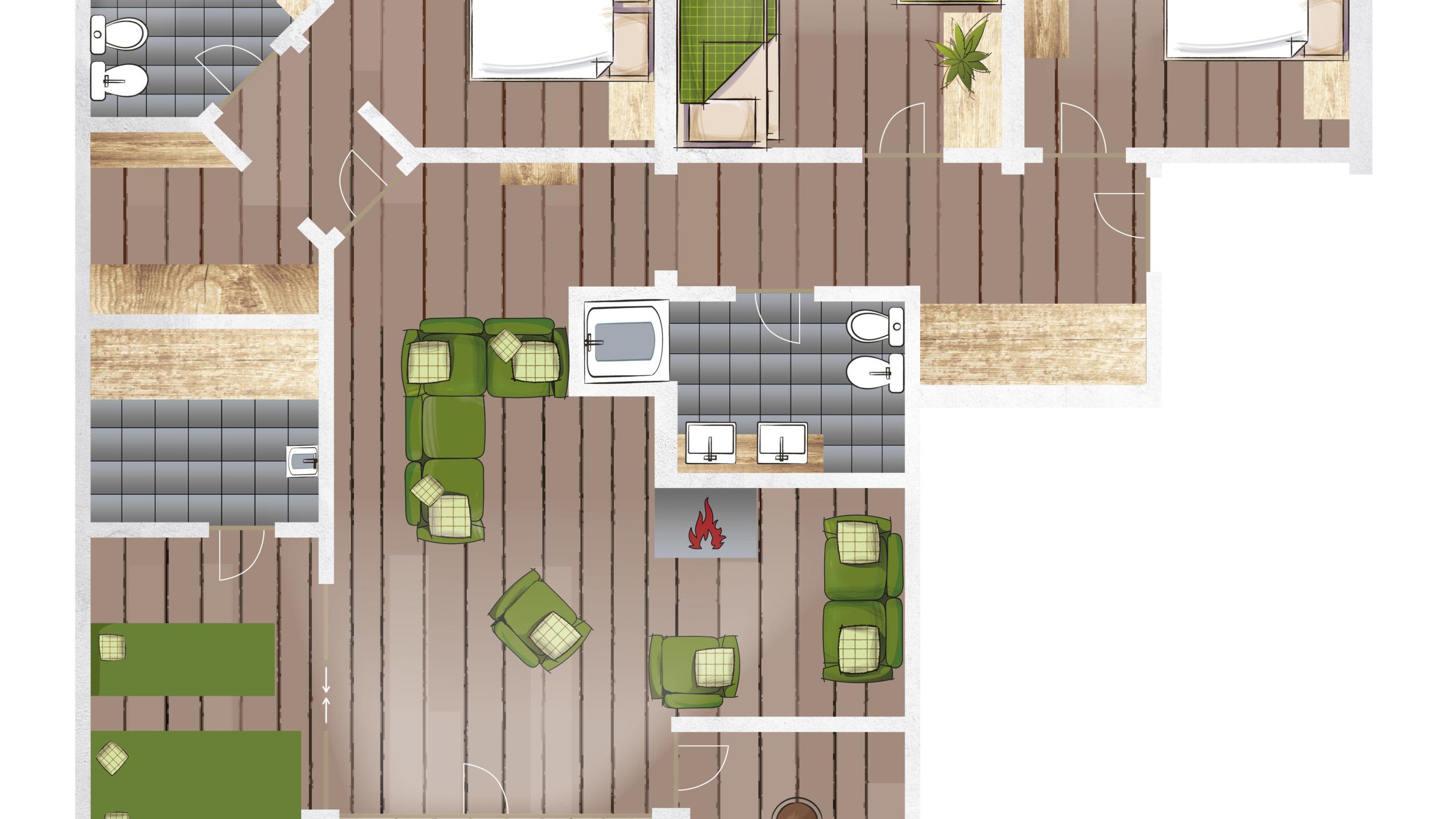 Appartamento di 4 camere al 3° piano con area soggiorno, pavimento in legno naturale, 3 camere, vasca idromassaggio riscaldata (36°C), sauna finlandese, 2 bagni – 1 bagno con vasca e 1 bagno con doccia, WC, bidet, 2 TV a schermo piatto, telefono, accesso WiFi, specchio per la cosmesi, asciugacapelli, frigorifero, cassaforte, cesta da bagno con telo da piscina e accappatoio, balcone esposto a sud, aria condizionata