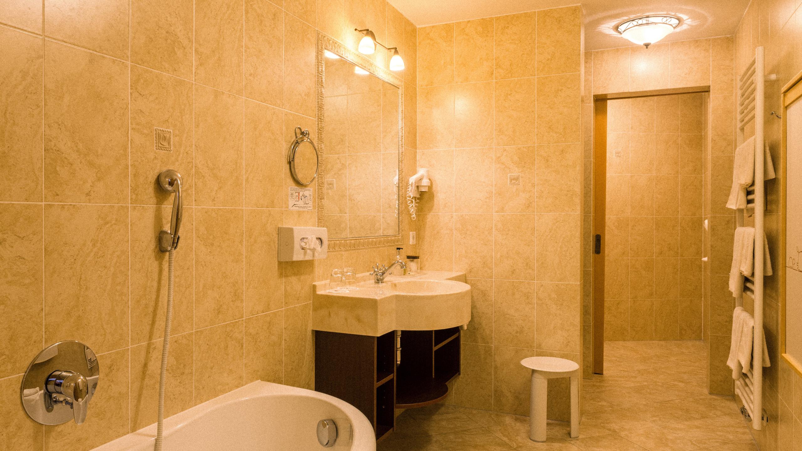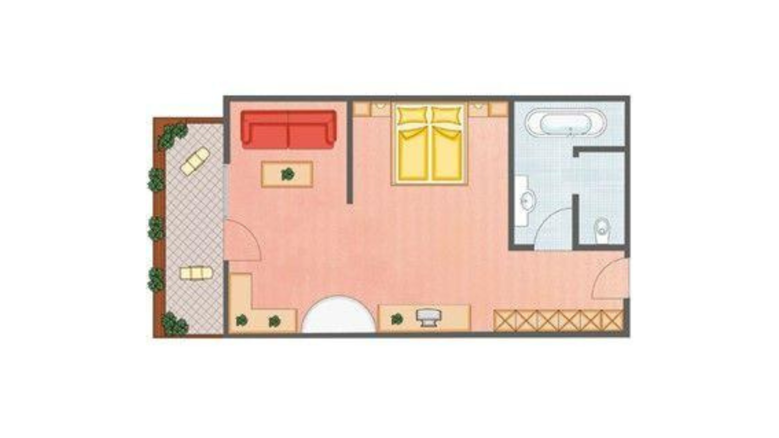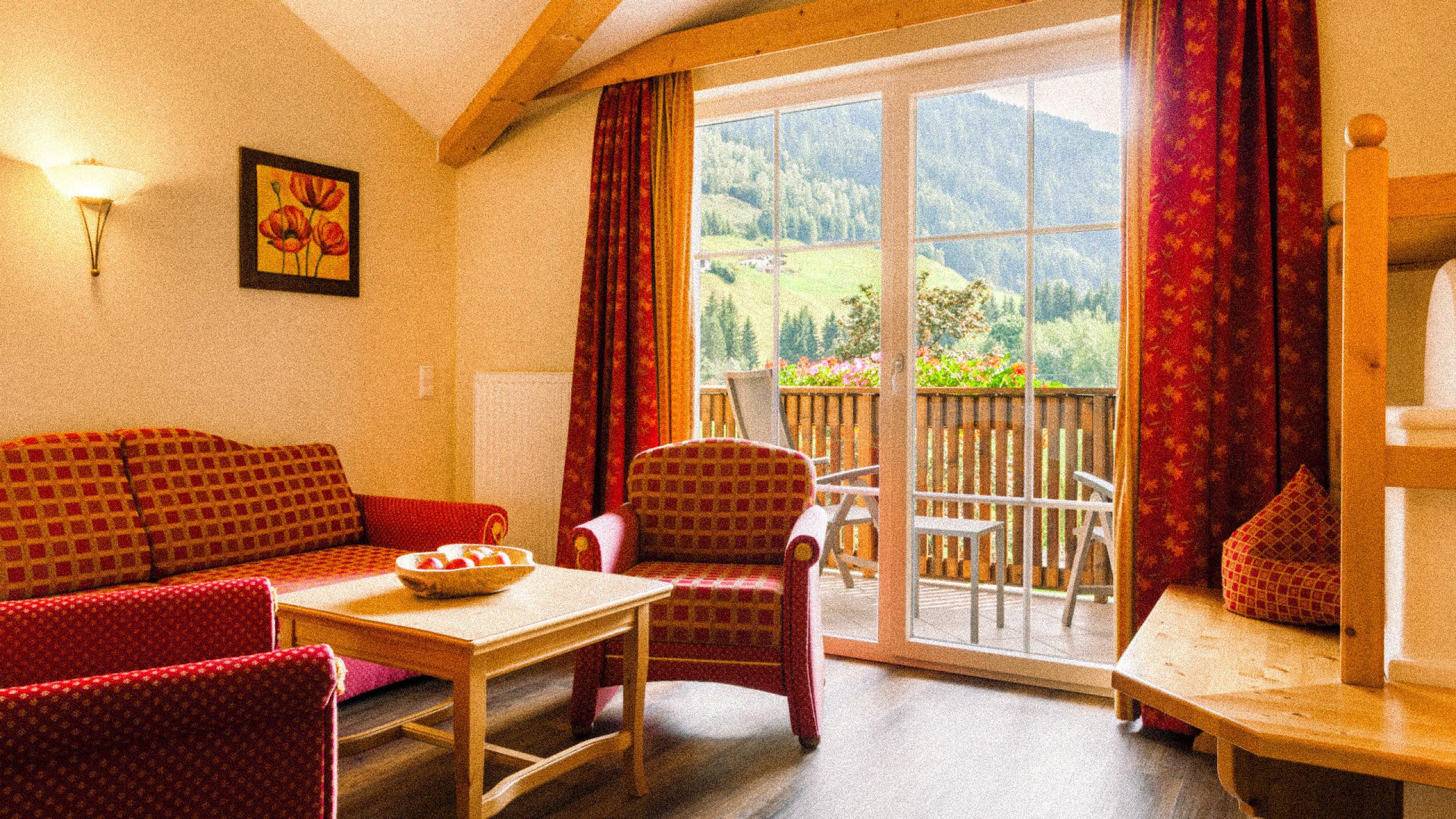 Bagno e/oppure doccia, WC separato, balcone, TV, telefono, cassetta di sicurezza, minifrigo, vano giorno/notte con stufa tradizionale e divano-letto, cabina armadio;