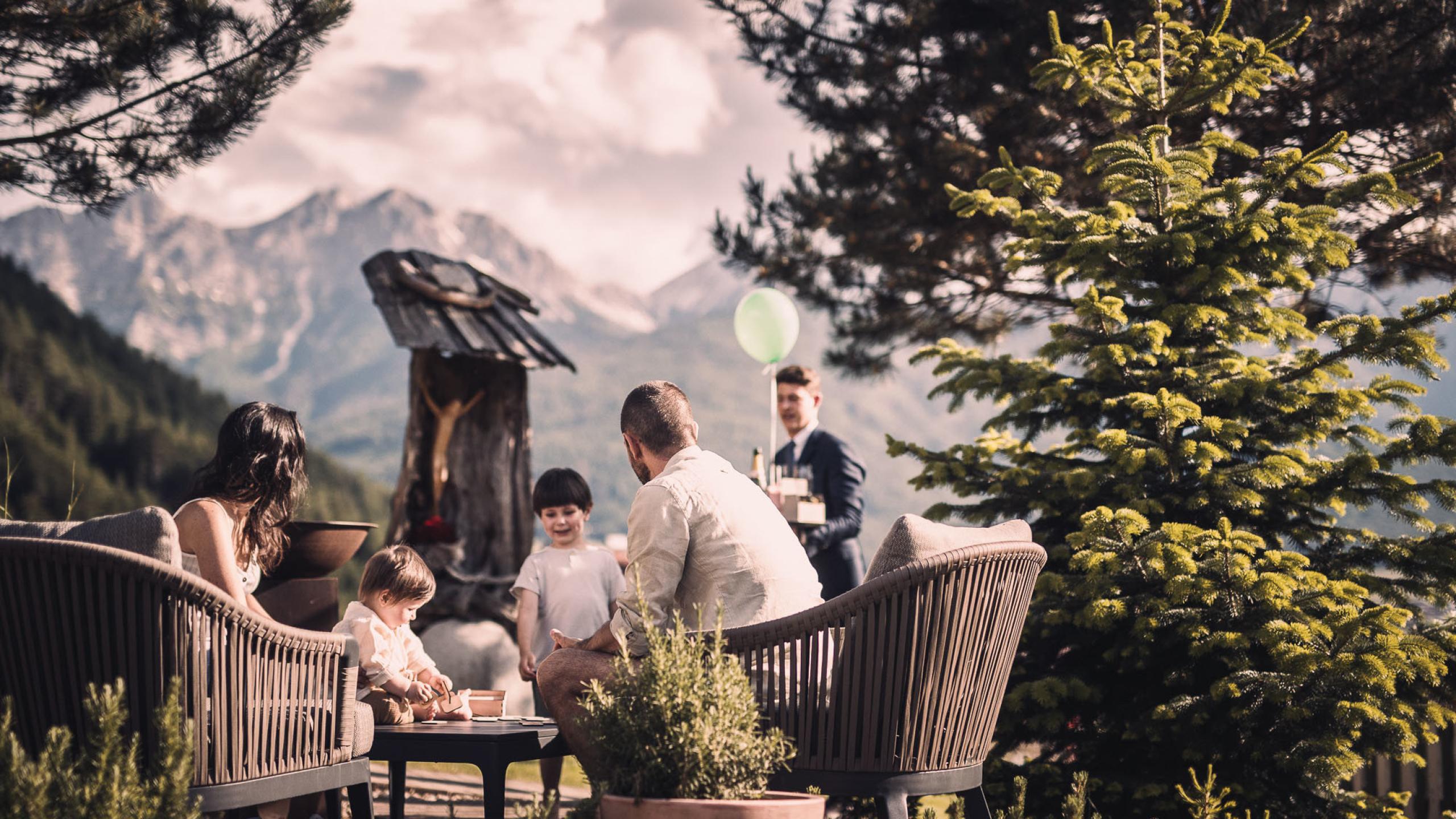 Pensione completa gourmet con ricca prima colazione a buffet, buffet a pranzo/nel pomeriggio (pasti caldi per i bambini dalle 12.30 alle13.30), cena servita con menù a scelta, menù servito per bambini