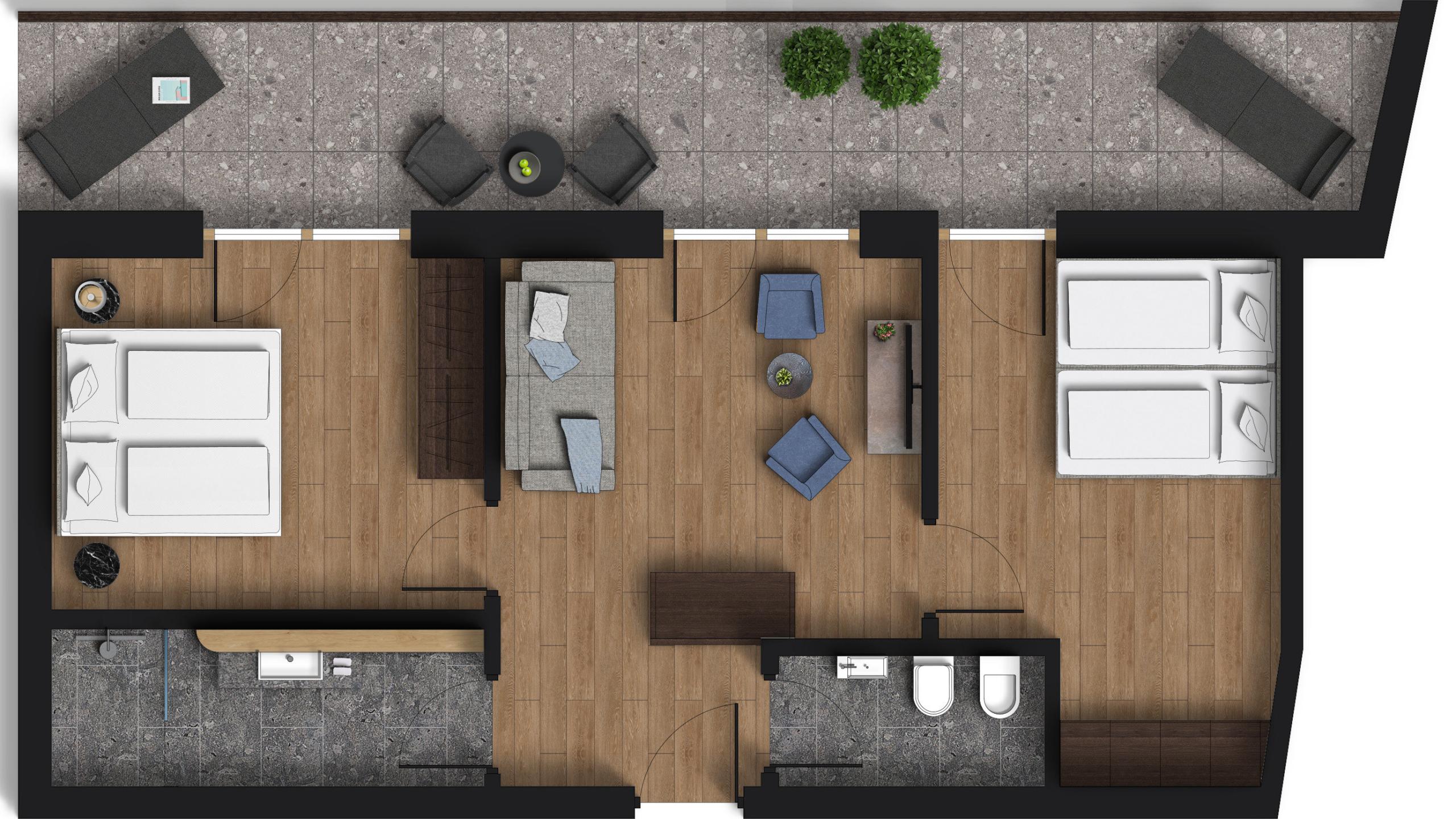 • 60m² e balcone con vista sulla natura (senza vista sul lago)